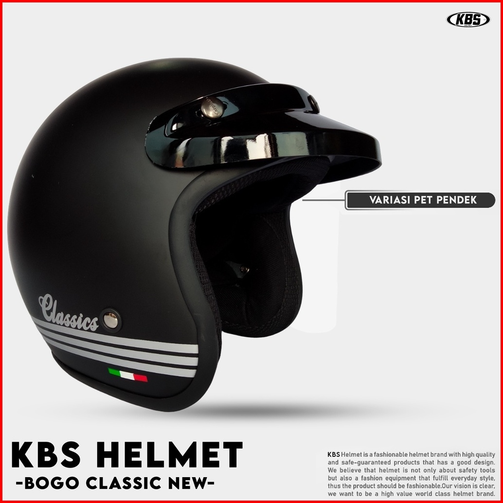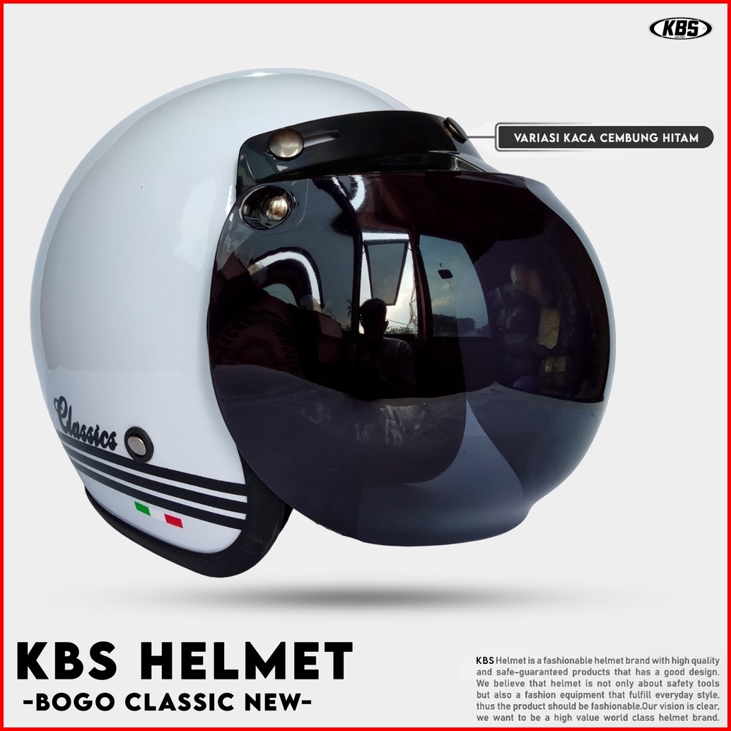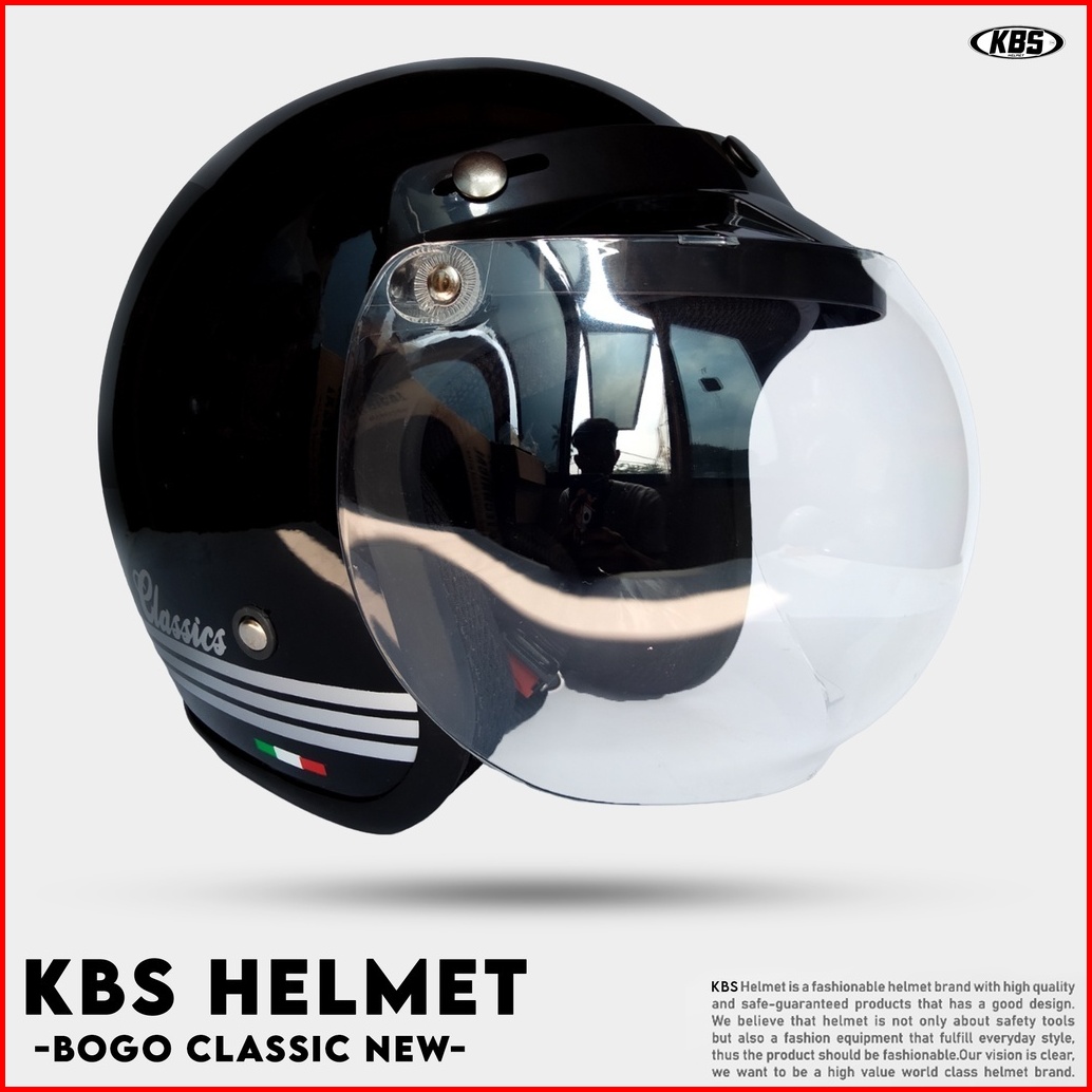 Helm Bogo Mla Classic Kaca Datar - Kaca Cembung Hitam Bening Helm Premium Untuk Pria Dan Wanita Dewasa Sni