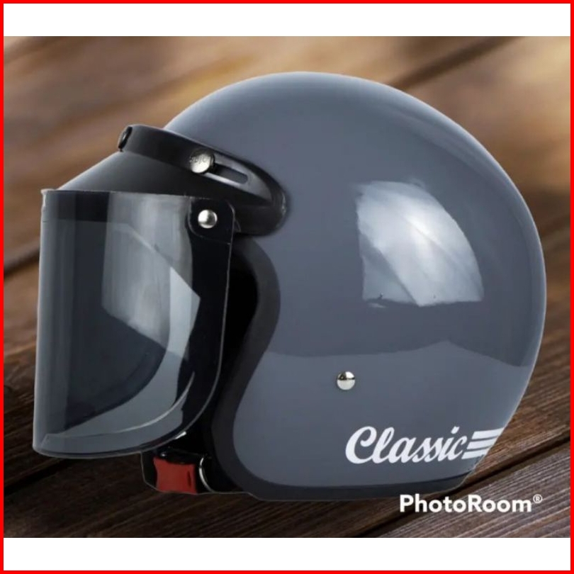 Helm Bogo Classic Dewasa Kaca Datar Sni Gorila Grey Doff
