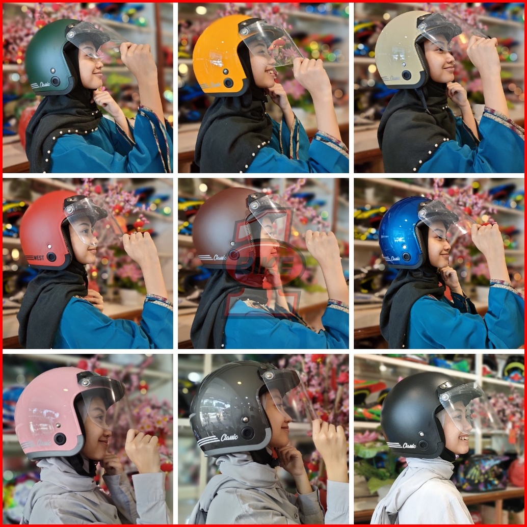 Helm Bogo West Dewasa Retro Polos Full Leher Sni Terlaris Helm Bogo Dewasa Wanita Pria Retro Classic Helm Wanita Dewasa