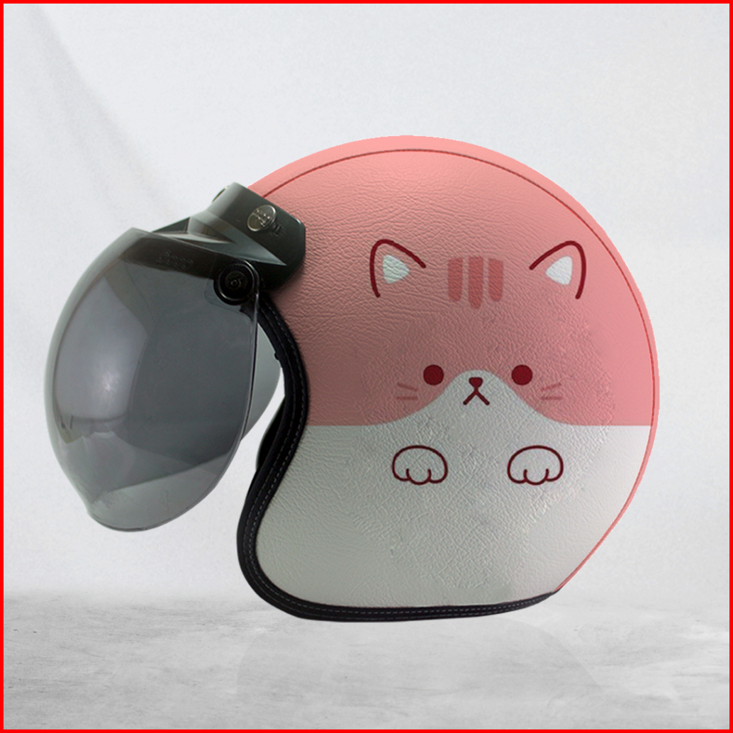 Helm Bogo Retro Dewasa Dan Anak Kulit Motif Kucing Lucu Pink Putih Bubble Sni Hallface