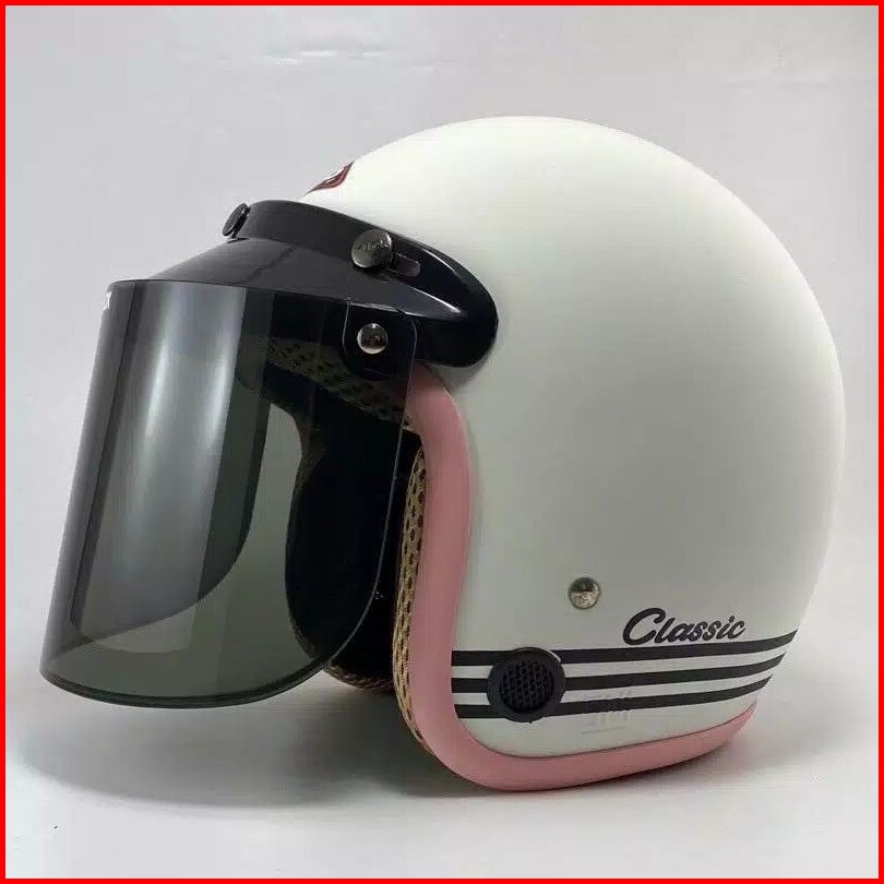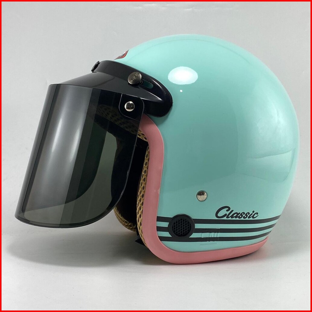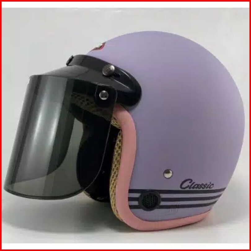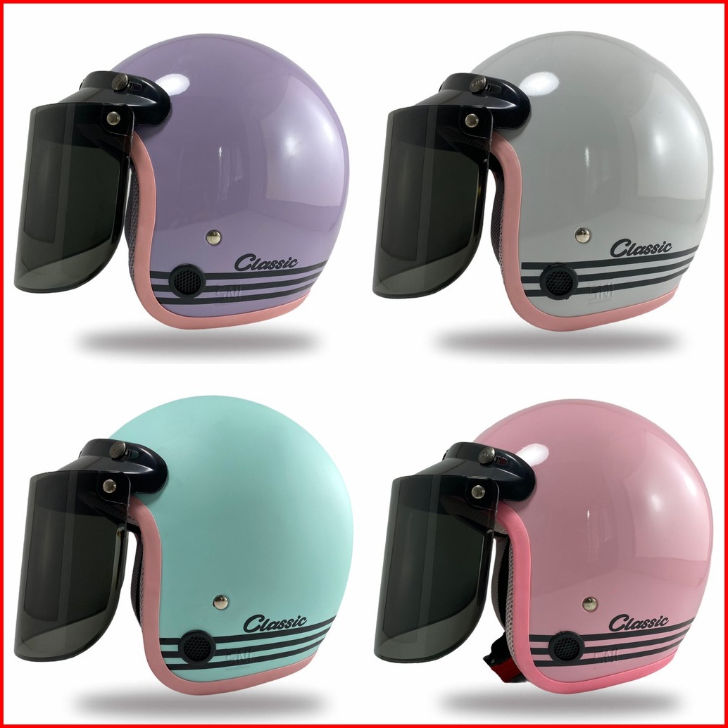 Helm Bogo Retro Classic Garis Pastel Motor Dewasa Sni