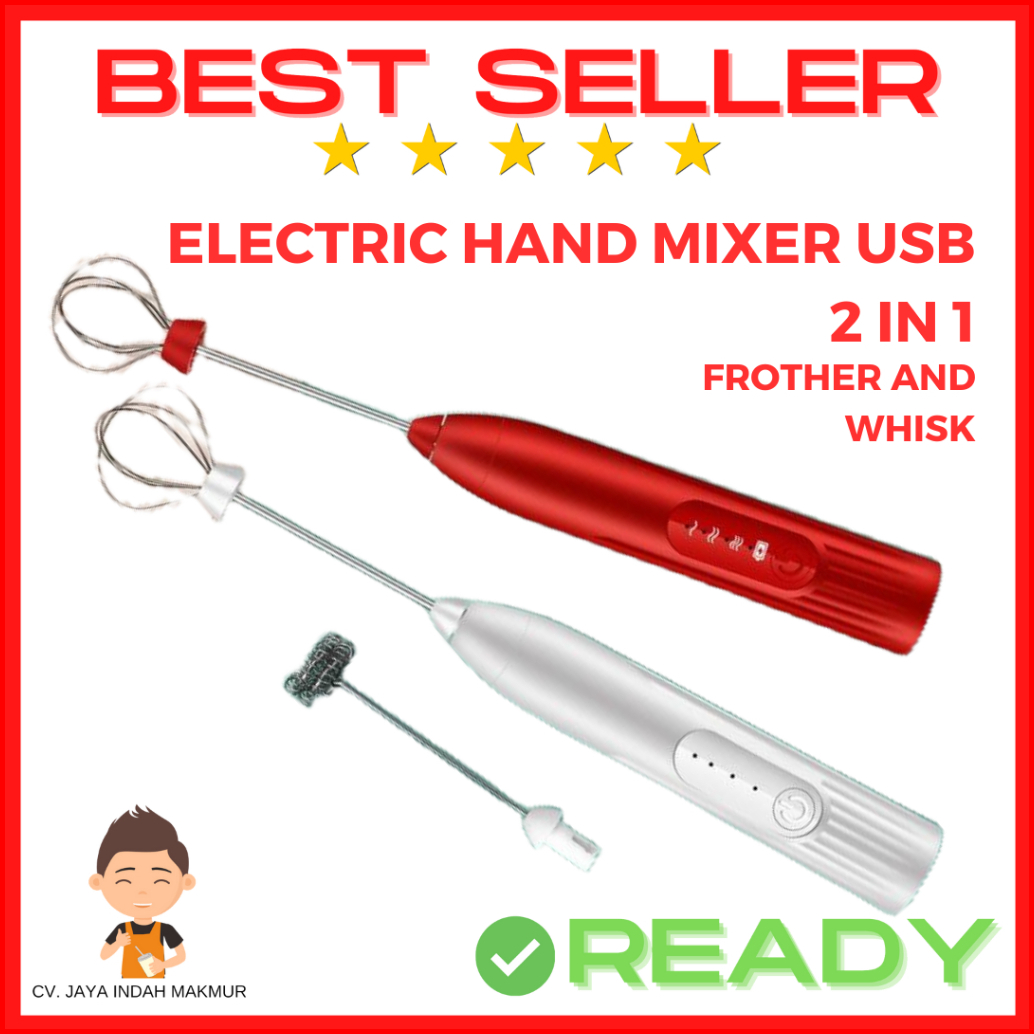 Mixer Electric Hand Pengaduk Kopi Susu Telur Kue Portable Kitchen Whisk 2in1 Milk Frother