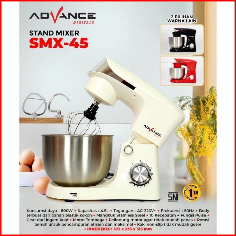 Advance Stand Mixer Smx-45 800w 4.5l 10 Kecepatan