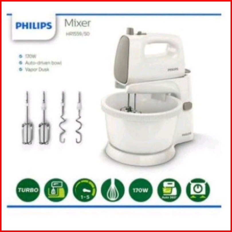Mixer Philips Hr1559 50-170 Mixer With Bowl Pengocok Adonan Kue Dan Roti Mixer Terbaru