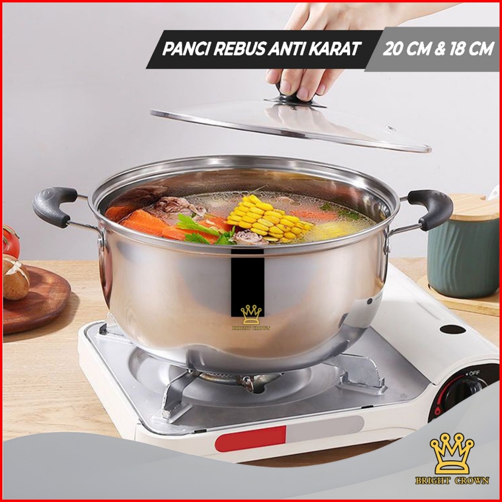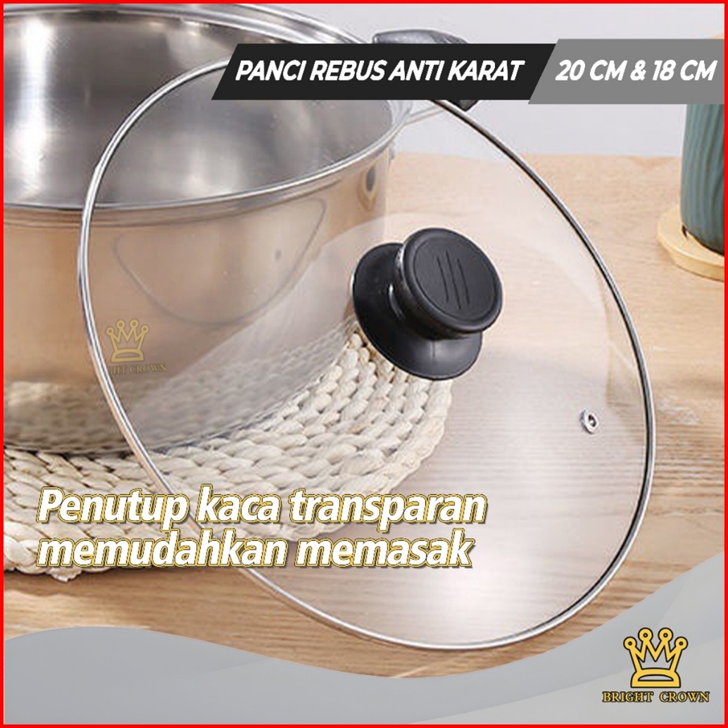 Yatt By Bright Crown Panci Soup Set Uk 20cm 18cm Stainless Steel Anti Karat Tutup Kaca Tebal