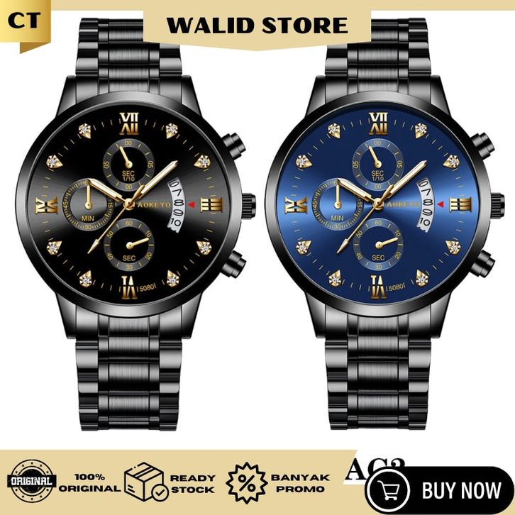 Jam Tangan Pria Anti Air Aokeyo 5080 Original Luxury Stainless Steel Mewah Dan Berkelas Free Box Kartu