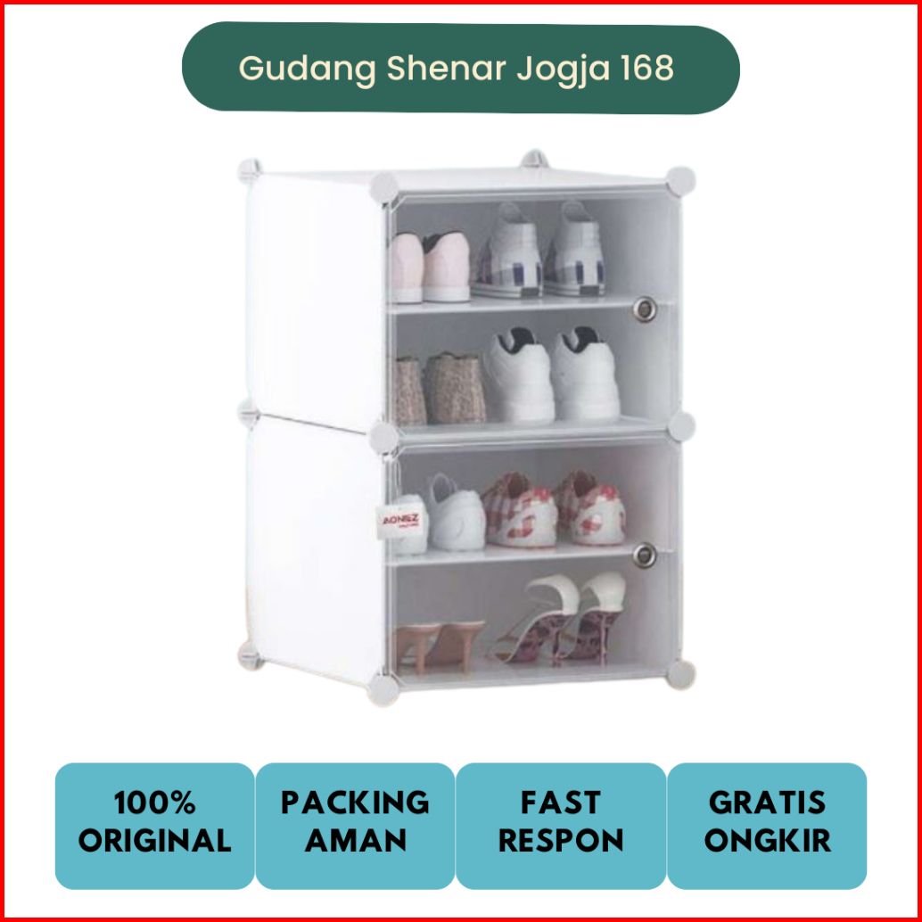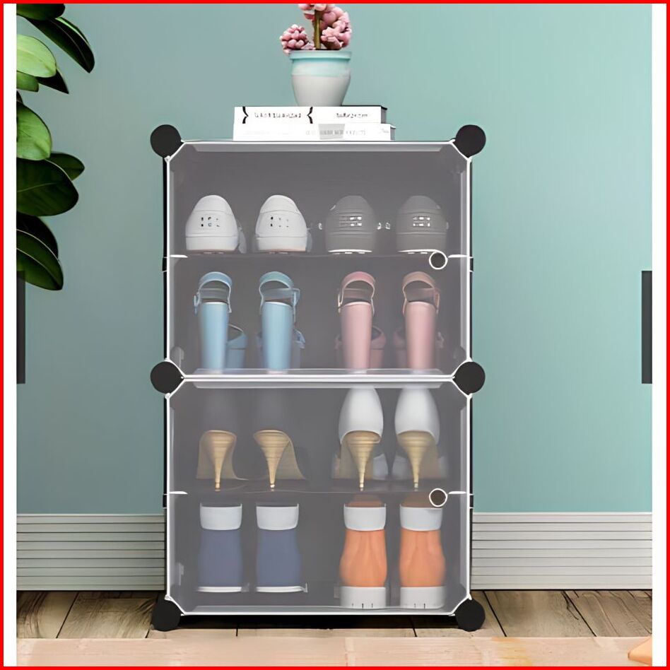 Rak Sepatu 4 Susun Tertutup Anti Debu Aesthetic Minimalis Banyak Slot