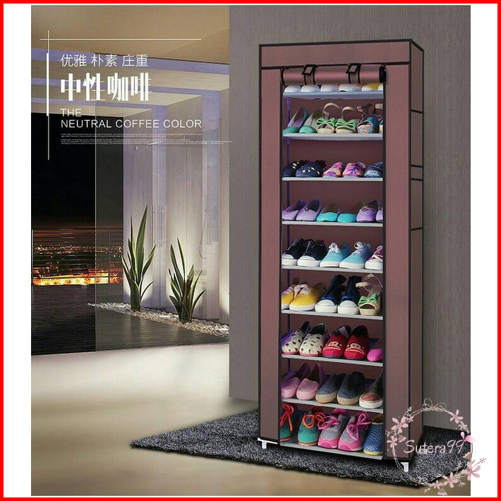 Rak Sepatu 10 Susun Rakitan Shoes Rack With Dust Cove Rak Sepatu 10 Tingkat 9 Ruang
