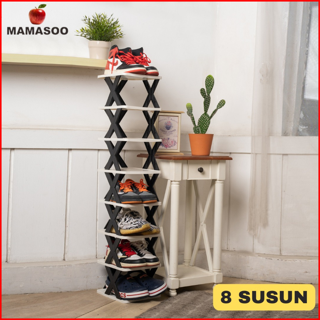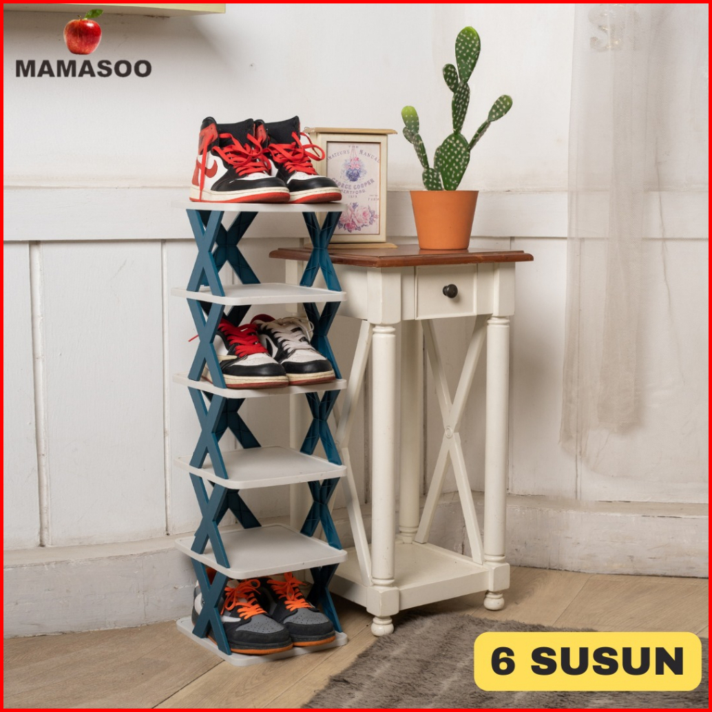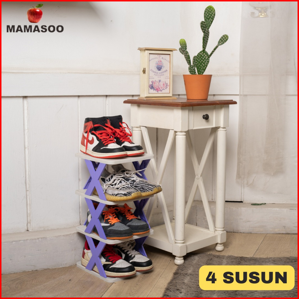 Mamasoo Rak Sepatu Sandal Susun Plastik Portable Aesthetic Tempat Sepatu Susun 2-8 Susun.