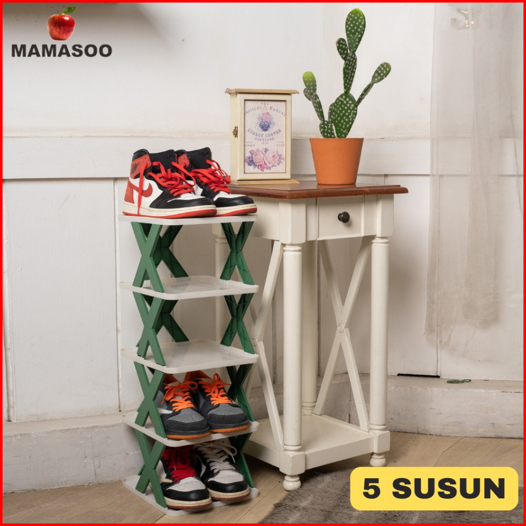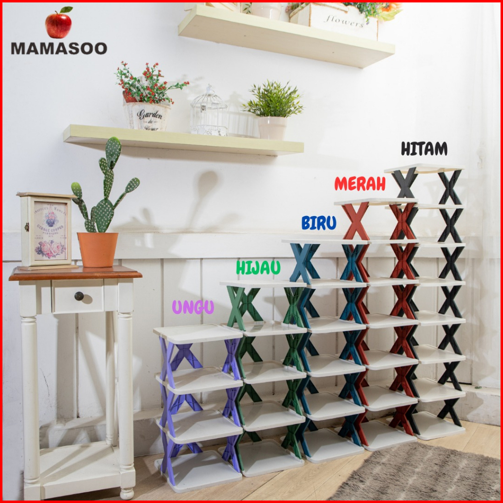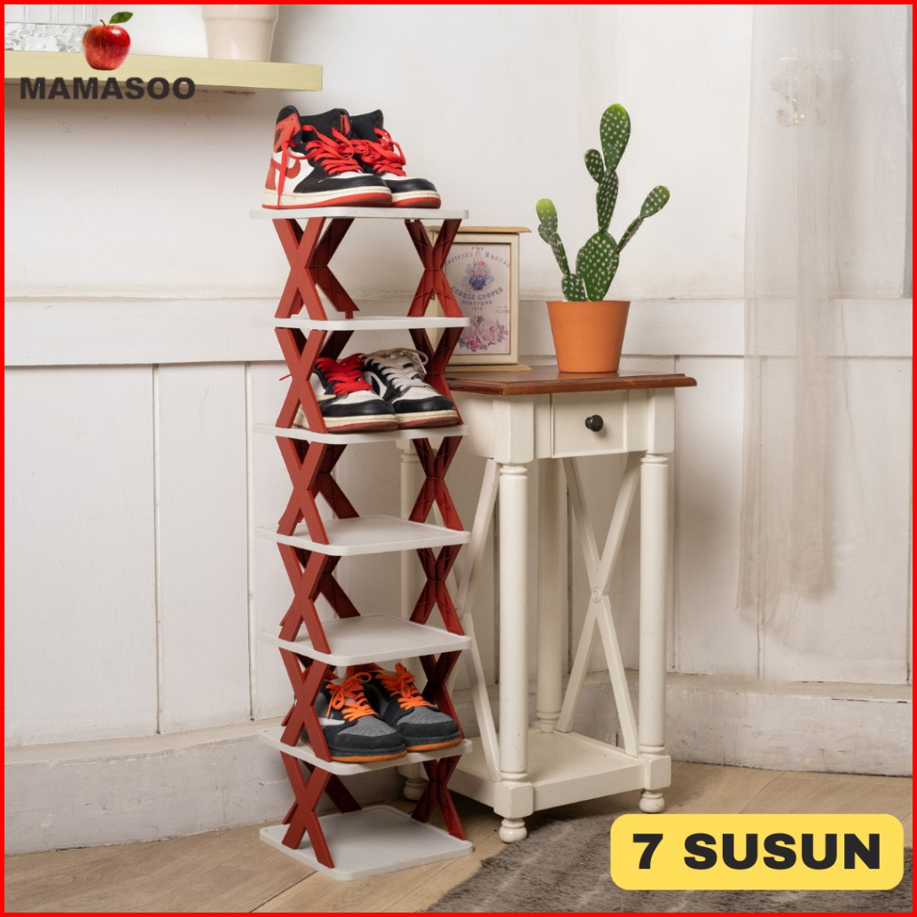 Mamasoo Rak Sepatu Sandal Susun Plastik Portable Aesthetic Tempat Sepatu Susun 2-8 Susun.