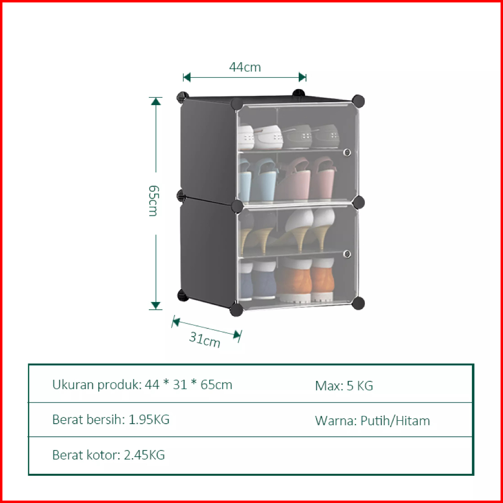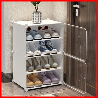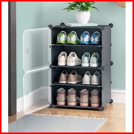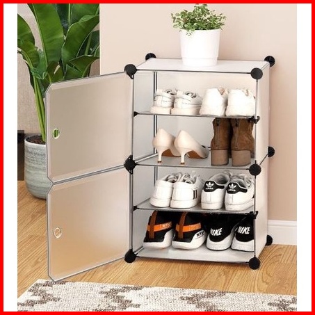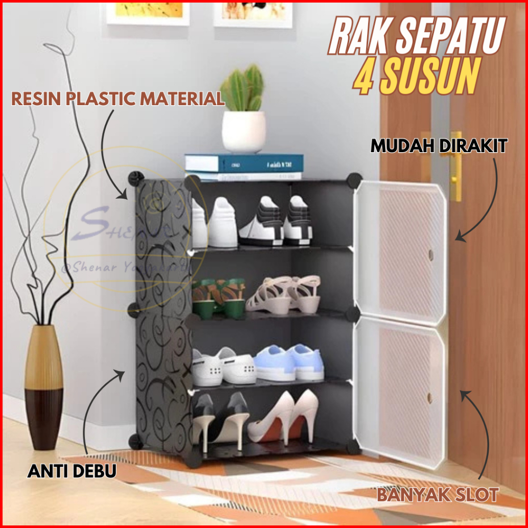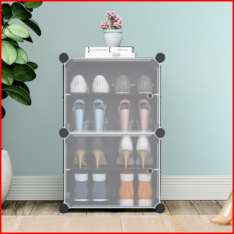 Rak Sepatu 4 Susun Tertutup Anti Debu Aesthetic Shoe Rack Serbaguna Banyak Slot