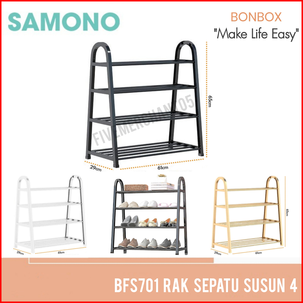 Rak Sepatu Susun 4 Bonbox Samono Bfs701 Shoes Rack Tingkat 4 Sendal Sepatu 4 Susun Hitam Putih Shoe