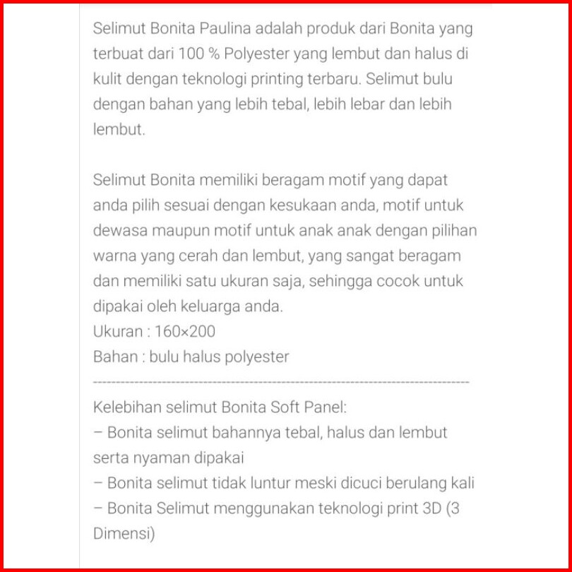 Selimut Bonita Paulina Bulu Halus Tebal 160x200