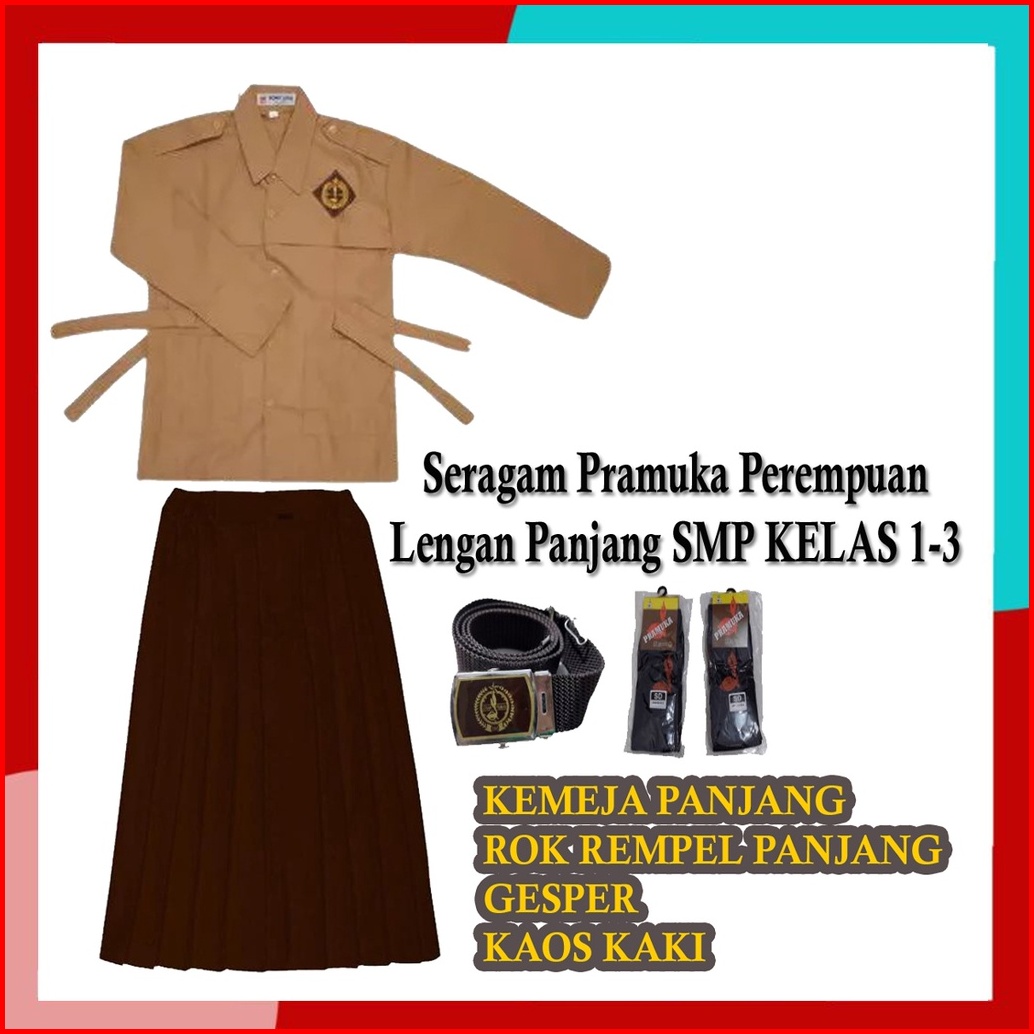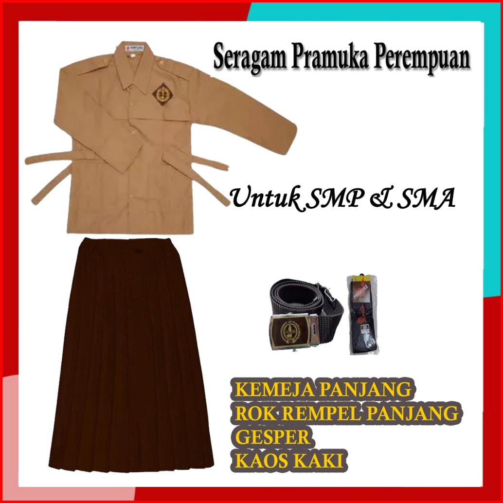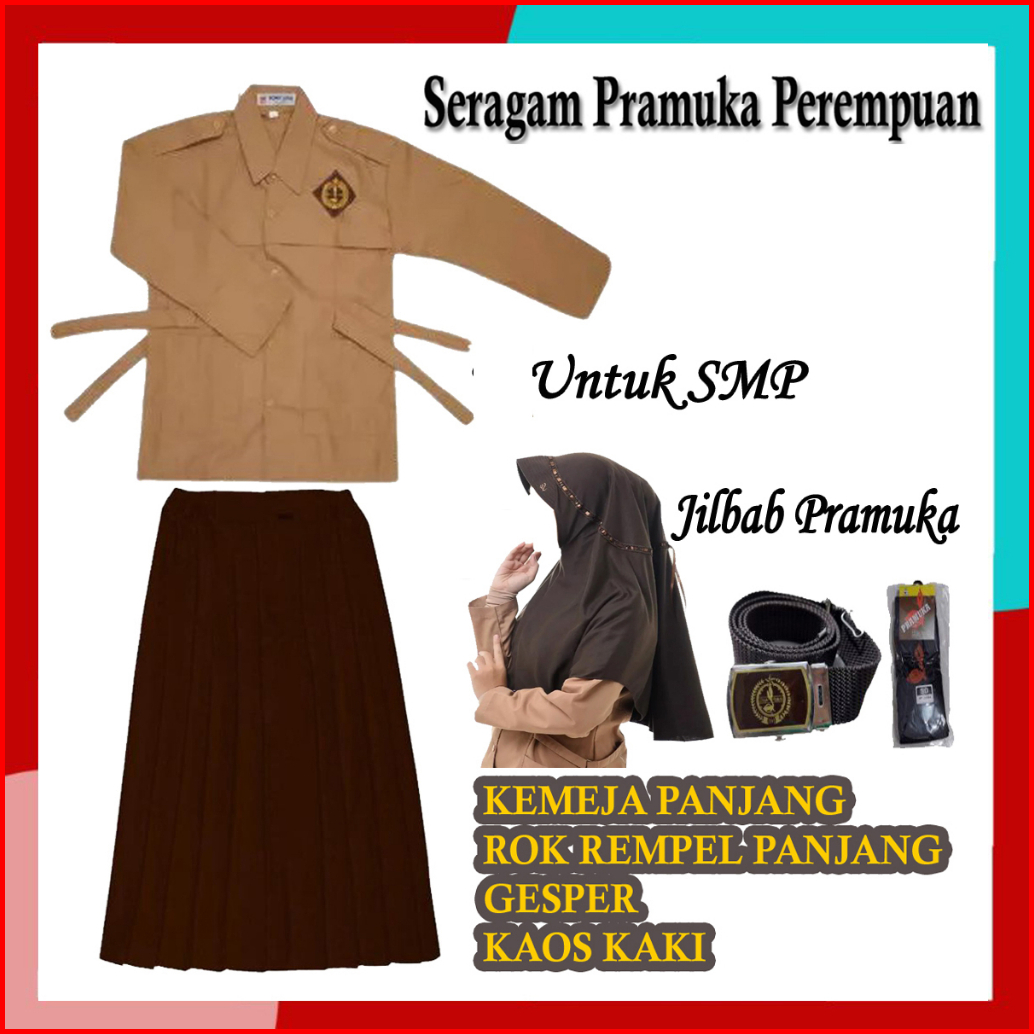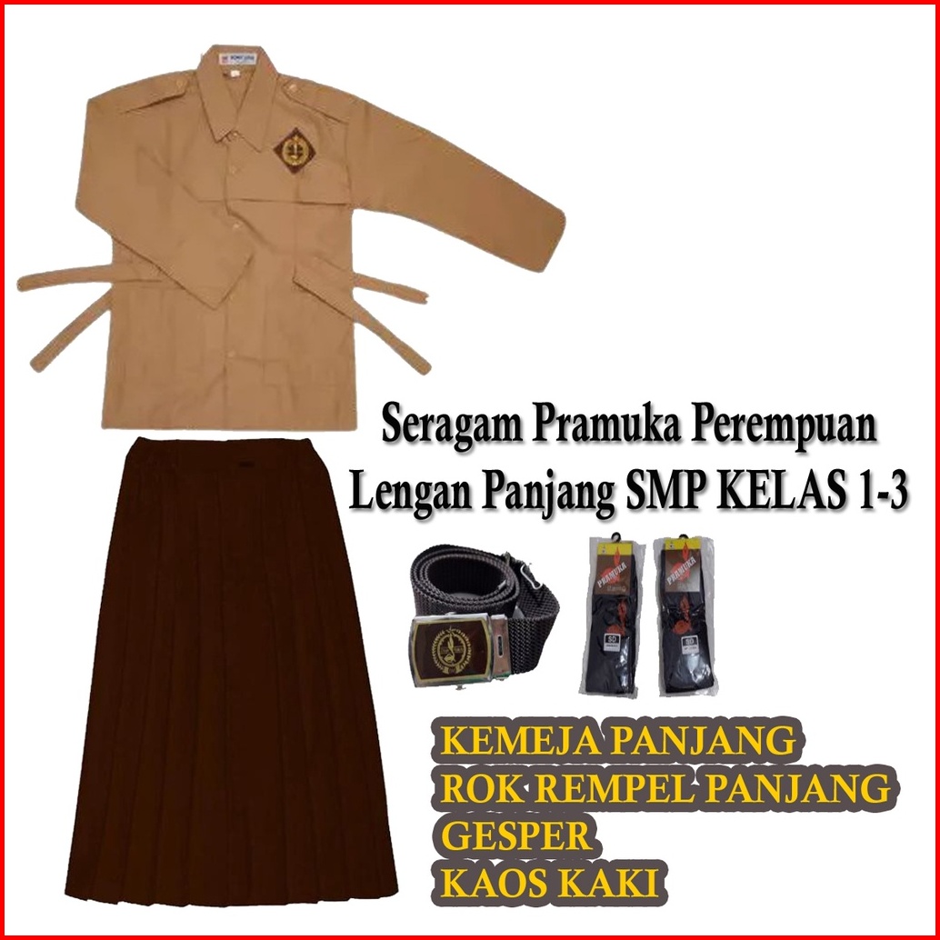 Paket Lengkap Setelan Seragam Pramuka Smp Perempuan Lengan Panjang