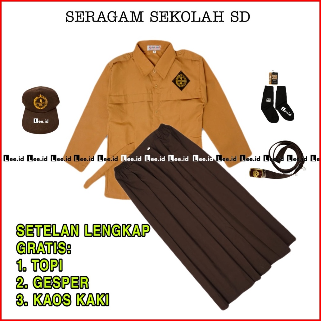 Lee Seragam Sekolah Sd Setelan Super Lengkap Pramuka Lengan Panjang Perempuan Kelas 1-6 Sd