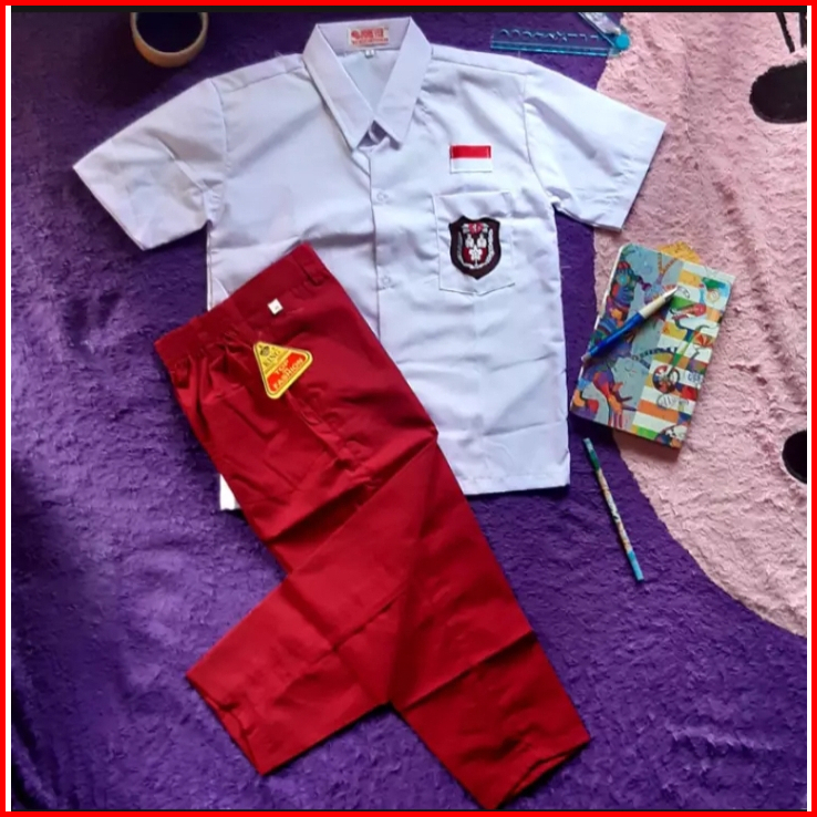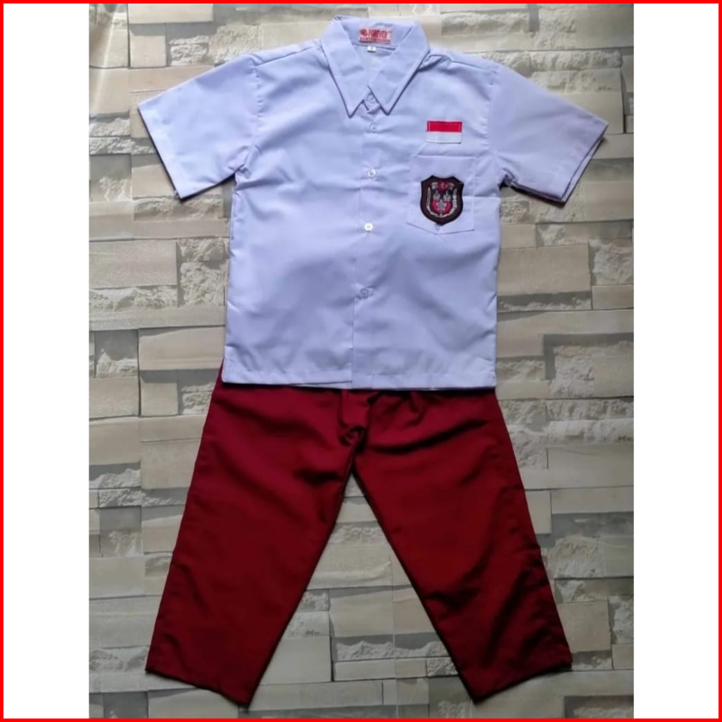 Setelan Seragam Sekolah Merah Putih Sd Lengan Pendek Celana Panjang Anak Laki