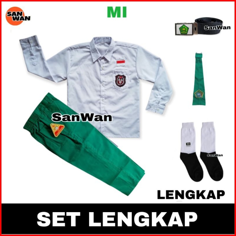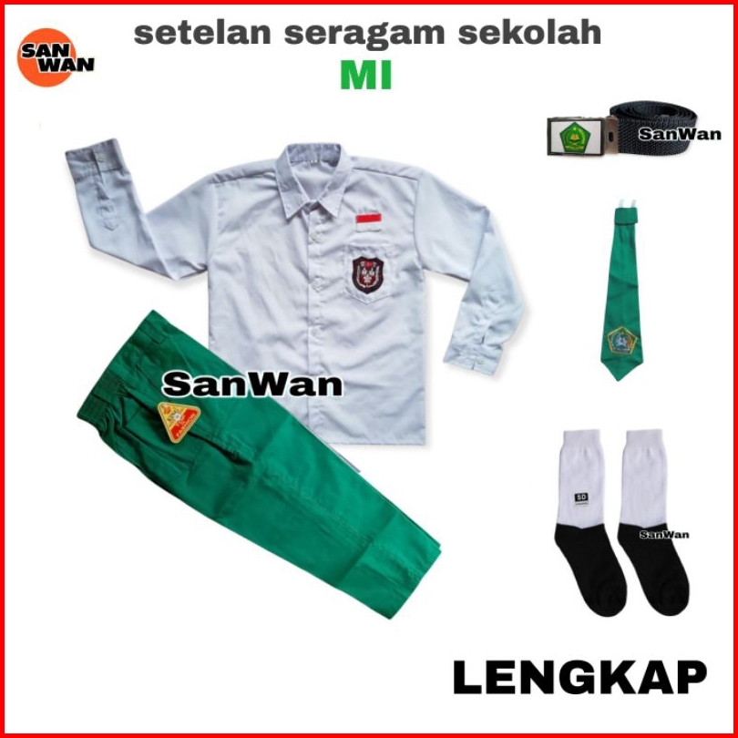 Setelan Seragam Sekolah Mi Laki Baju Celana Panjang Lengkap Kelas 1- 6 Sd