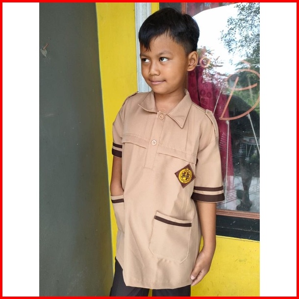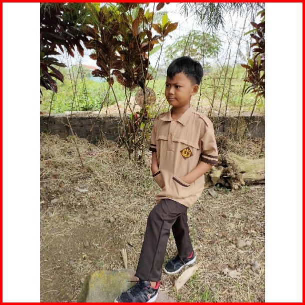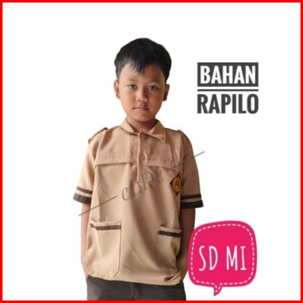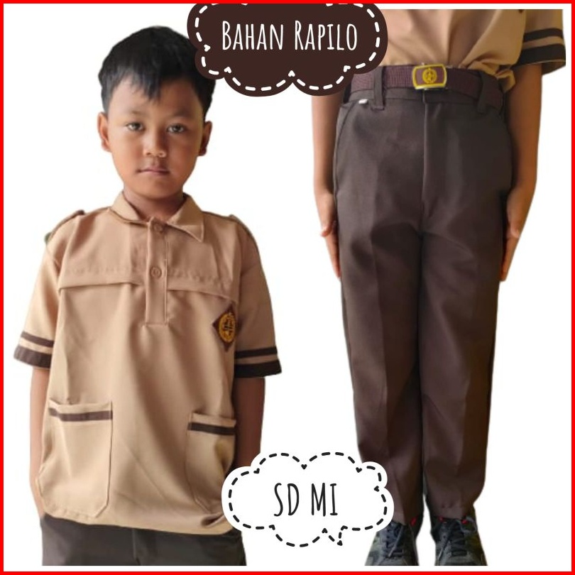 Setelan Baju Sekolah Seragam Pramuka Siaga Sd Mi Bahan Rapilo Tangan Pendek Laki Laki