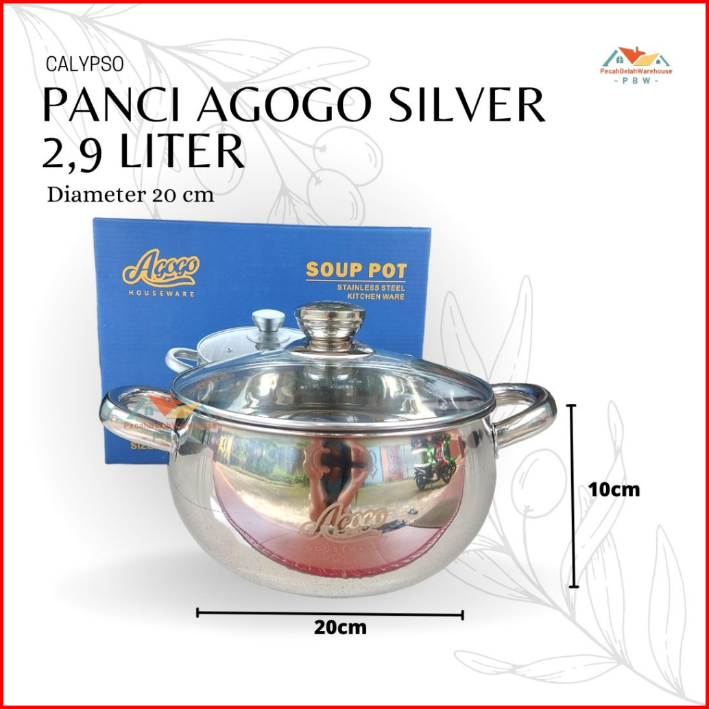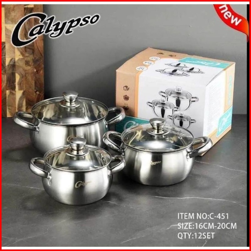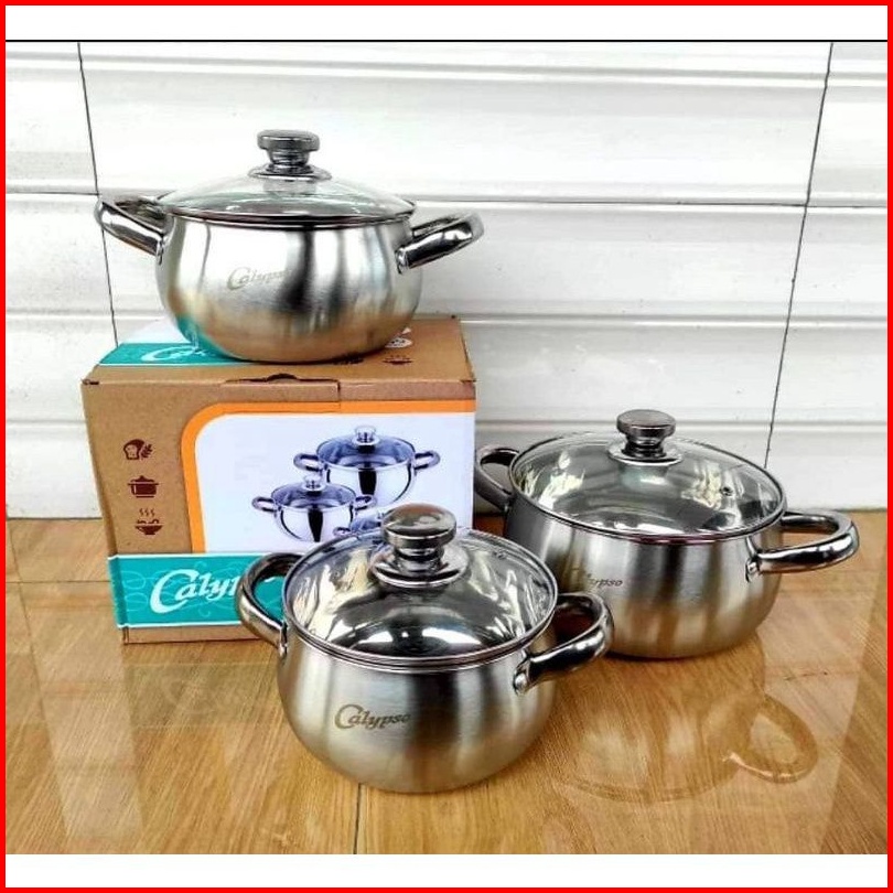 1pcs Panci Stainless Calypso Agogo Panci Labu Stainless Tutup Kaca Panci Mpasi Panci Masak