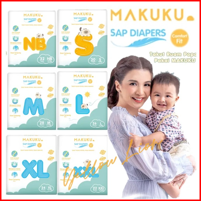 Makuku Diapers Comfort Fit Nb32 S30 M28 L26 Xl24 Xxl22