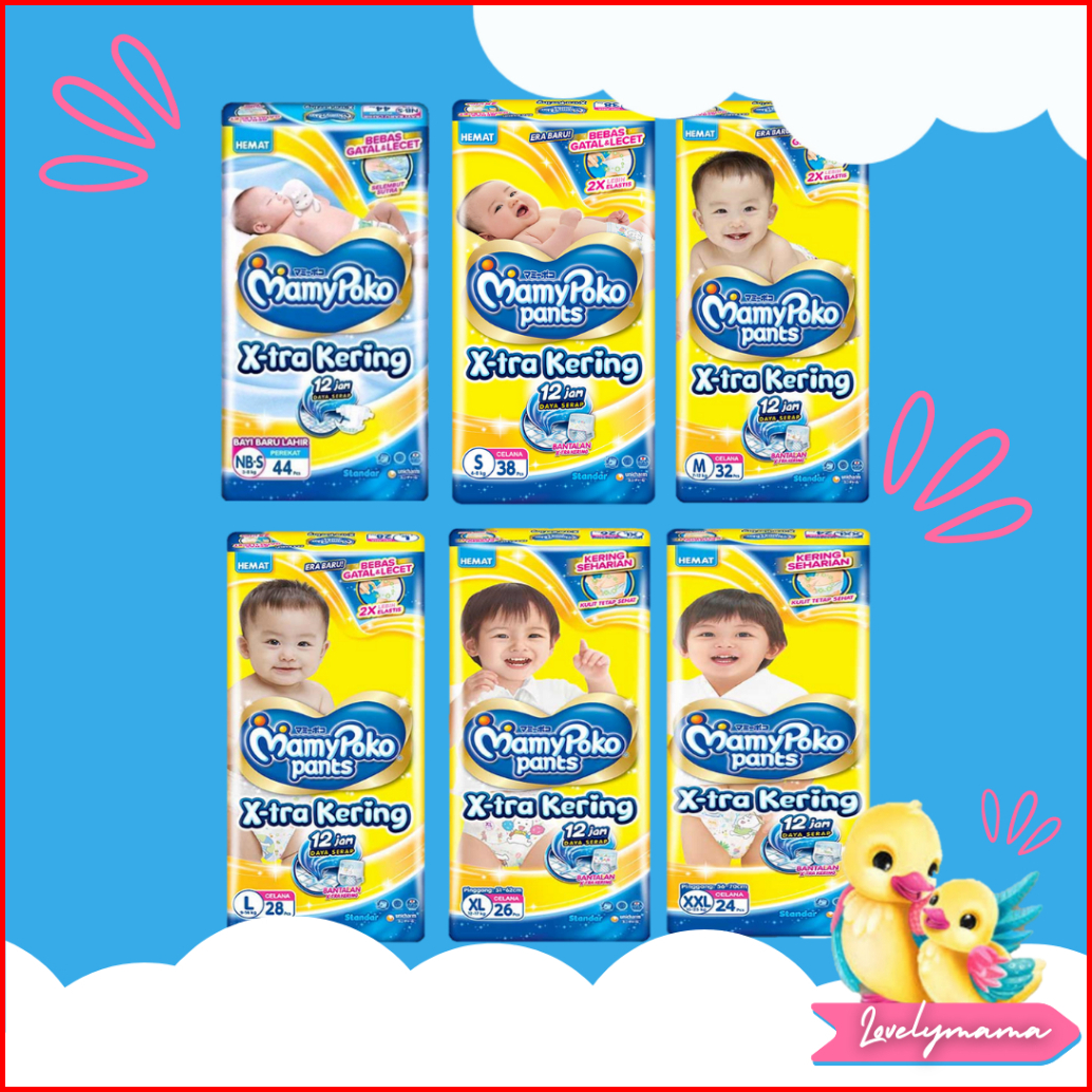 Mamypoko X-tra Kering Extra S38 M32 L28 Xl26 Xxl24 Mamy Poko S 38 M 32 M 34 L 28 L 30 Xl26 Xxl 24 Popok Sekali Pakai Bab