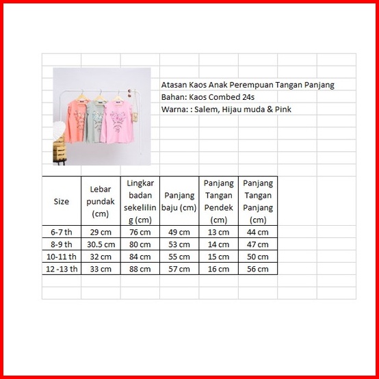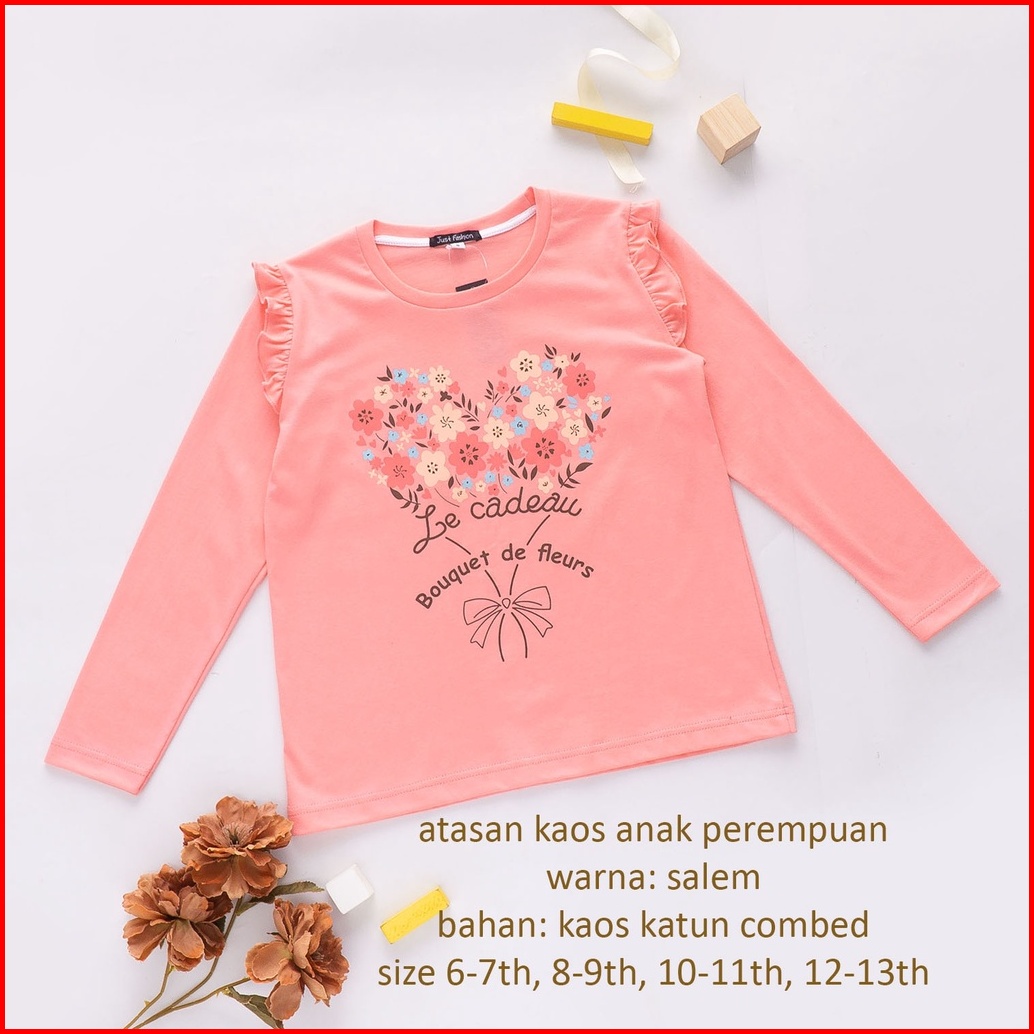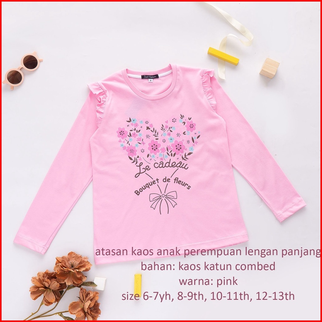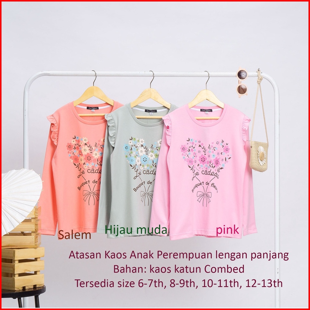Baju Atasan Kaos Anak Perempuan Remaja Tanggung Basic Lengan Panjang Combed 6 8 10 12 Tahun