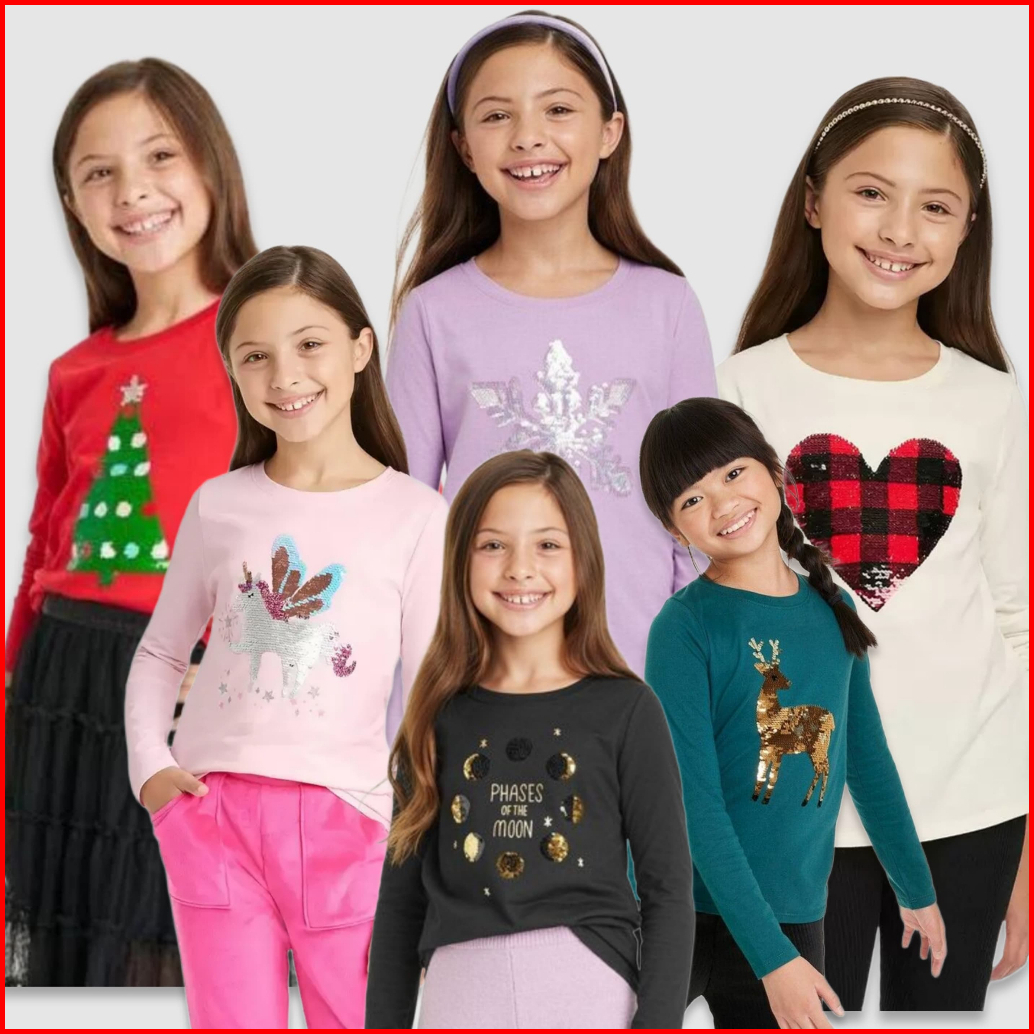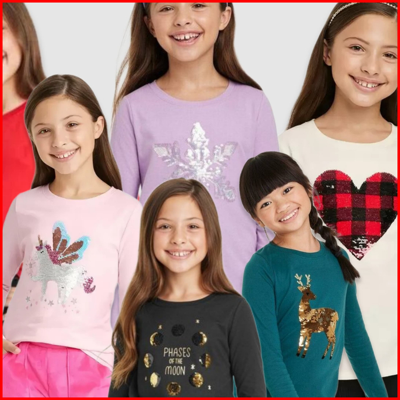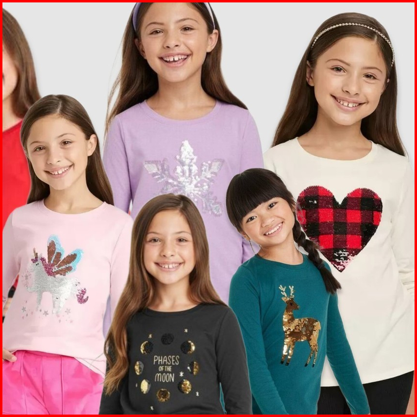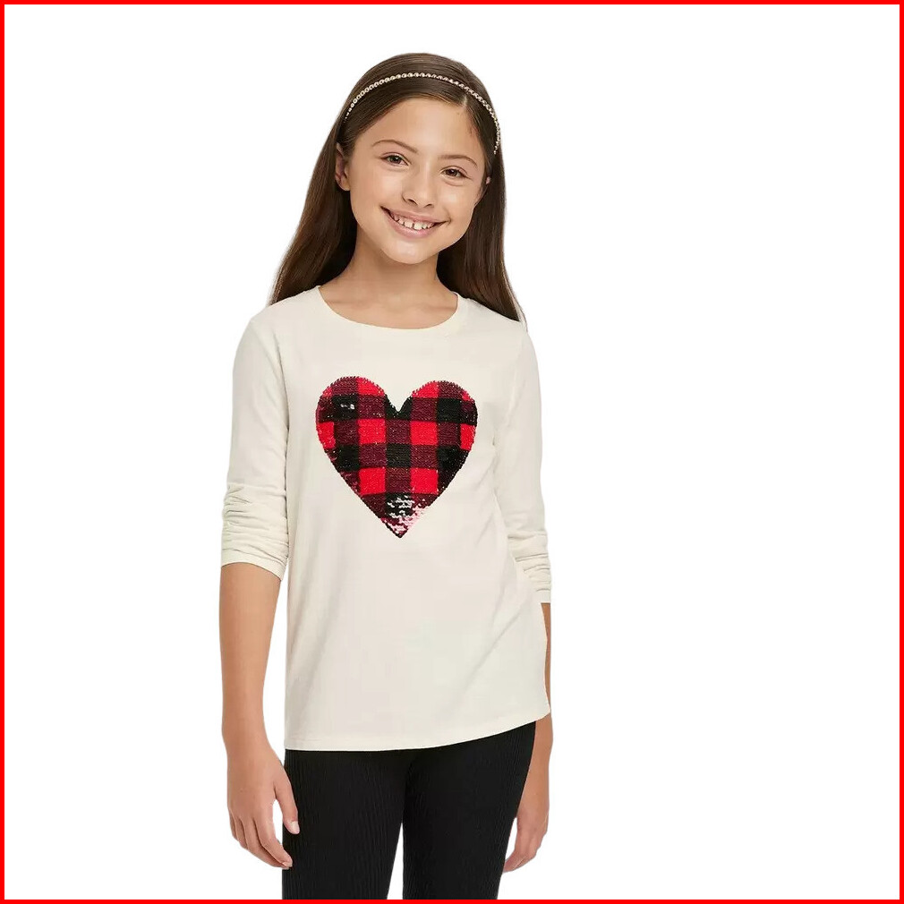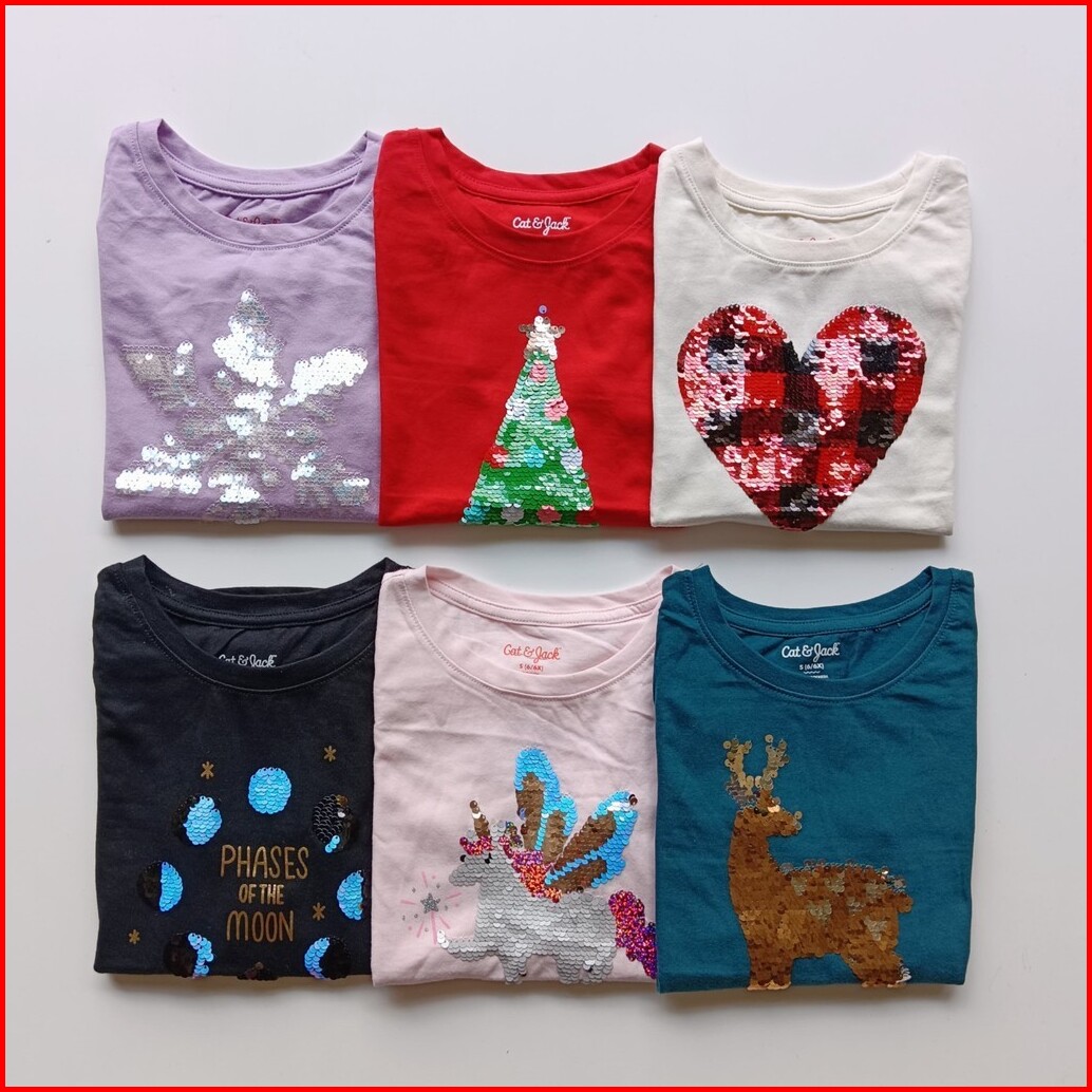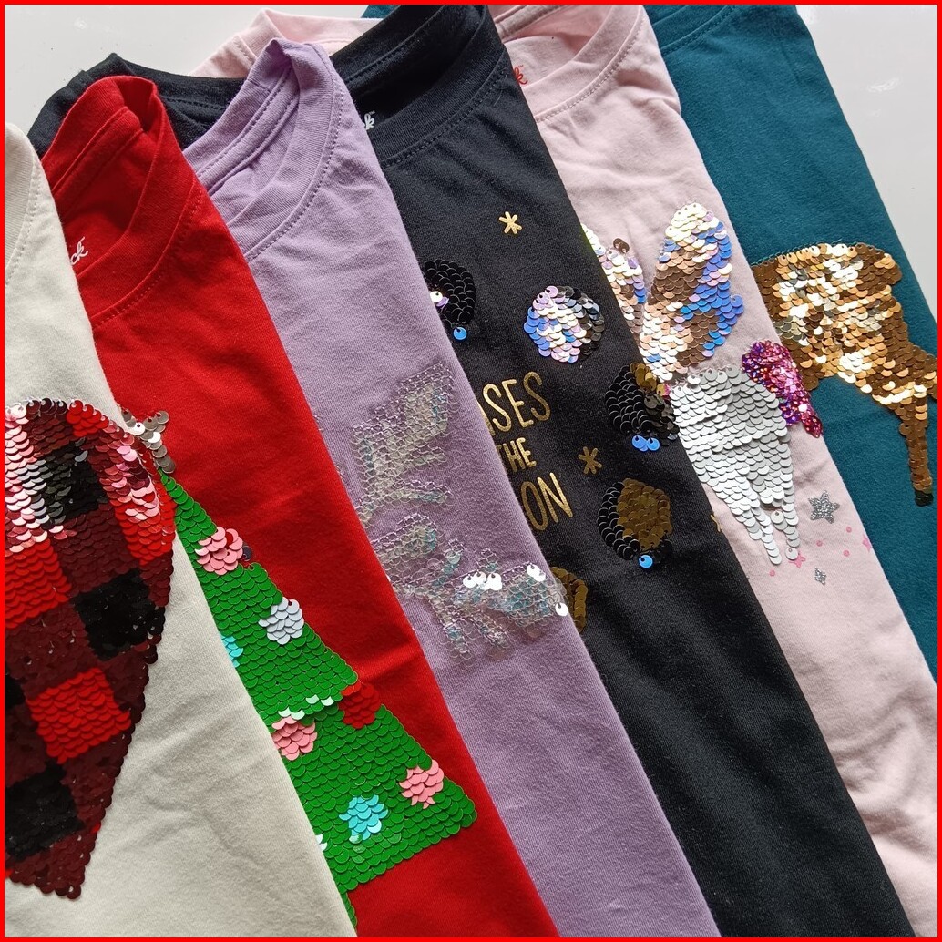 Kaos Anak Perempuan Lengan Panjang Sequin Ctj 4 - 14 Tahun