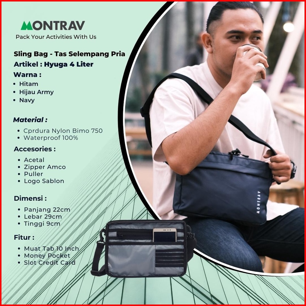 Montrav - Tas Selempang Pria - Tas Slempang - Sling Bag Pria - Hyuga 4 Liter