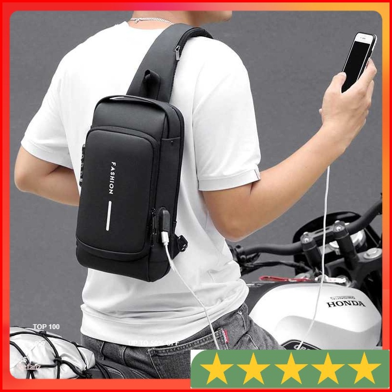 Rowe Tas Selempang Fashion Sling Bag Pria With Usb Charger Slot Lock - 88039