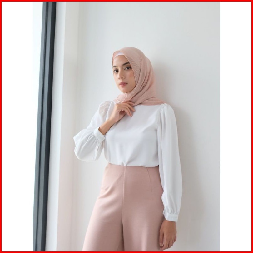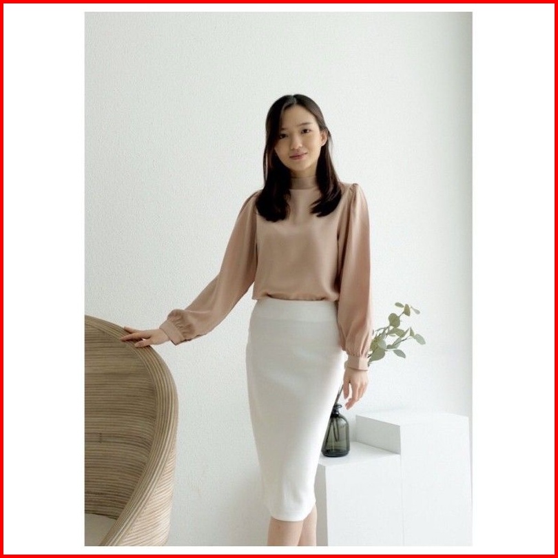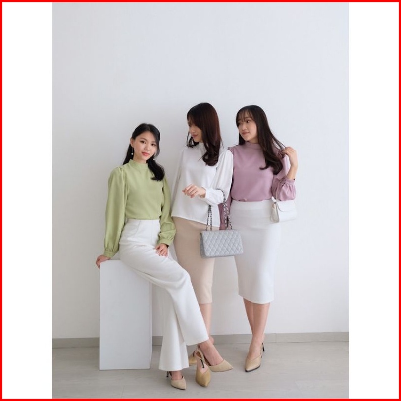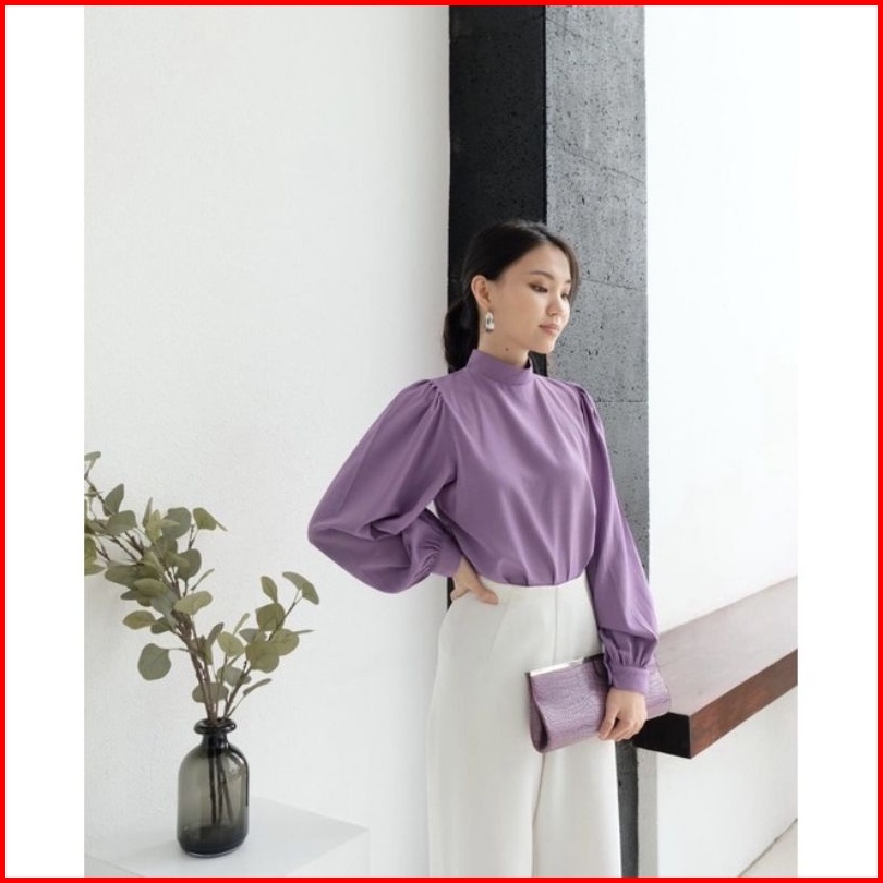 Blouse High Neck Tangan Panjang Puffy Korea Size S M L Xl Blouse Casual