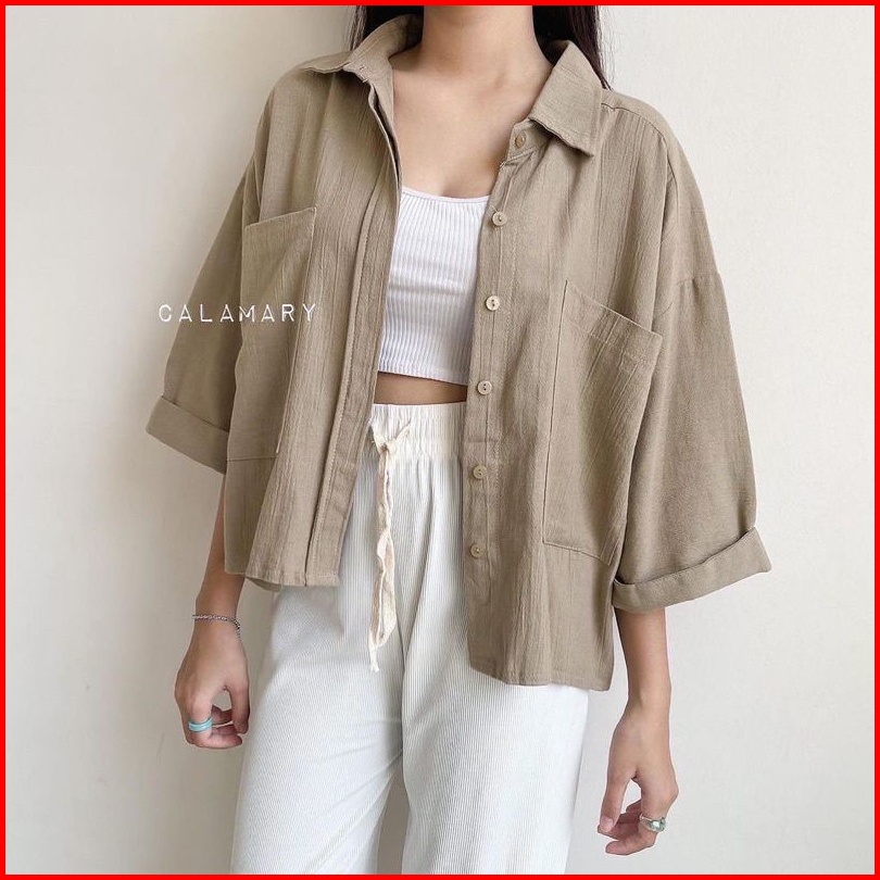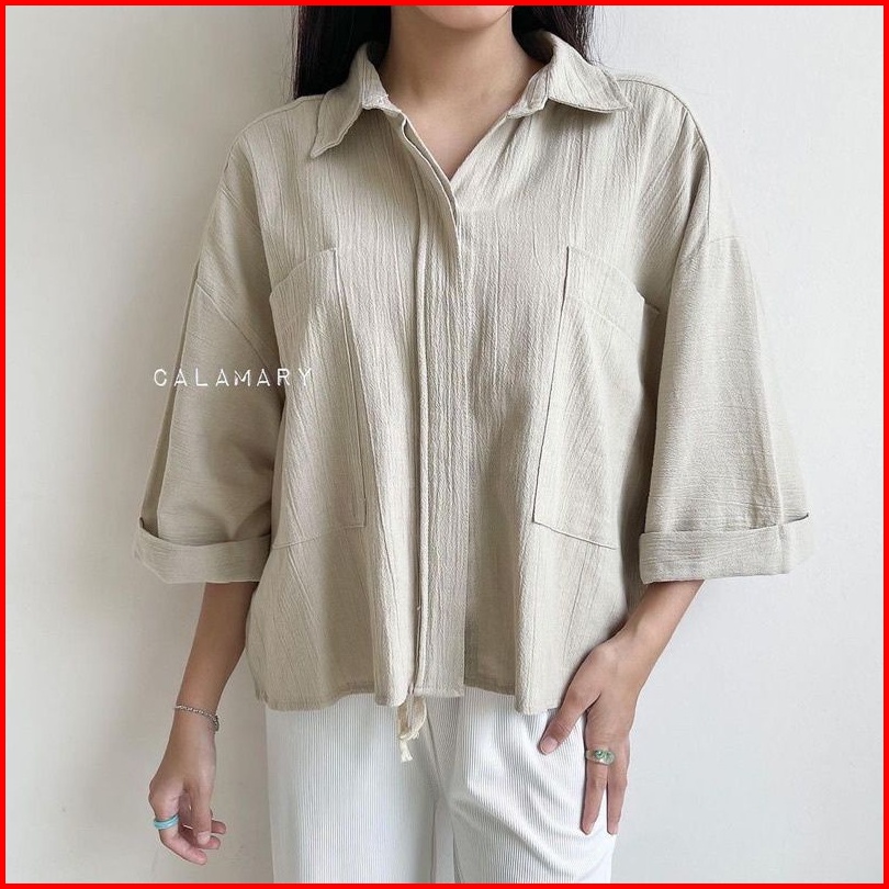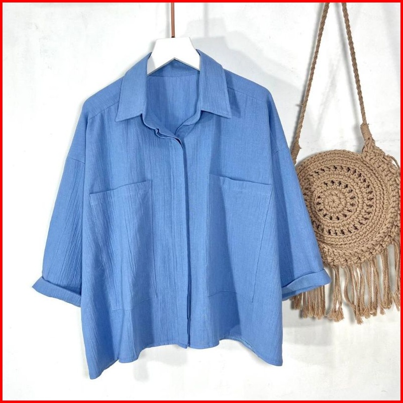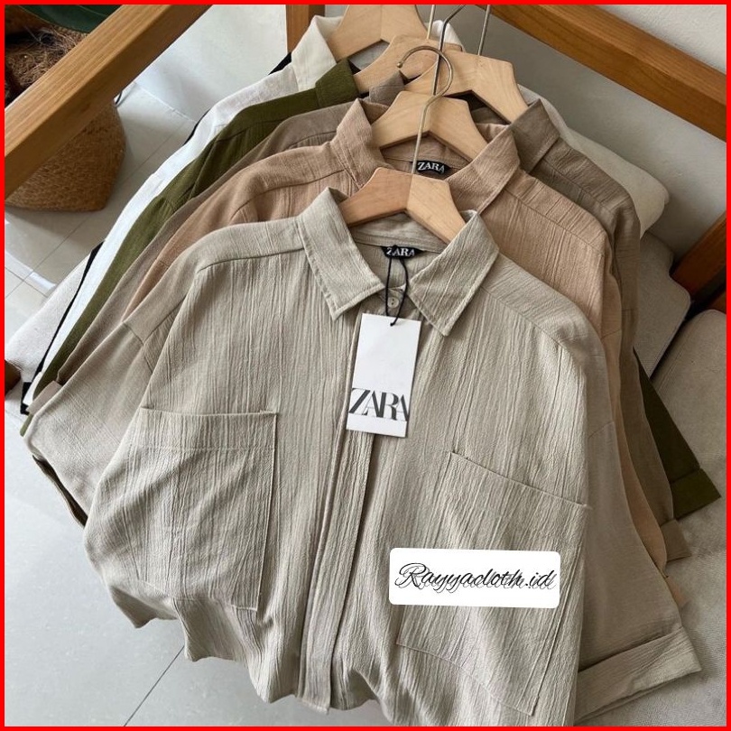 Rayyacloth.id Zavila Shirt Rayon Crinkle - Kemeja Jumbo Saku 2 - Cozie Top Kemeja Linen - Blouse Wanita Korean Style Bah