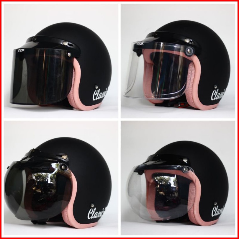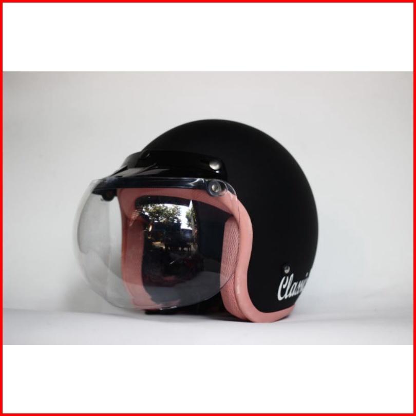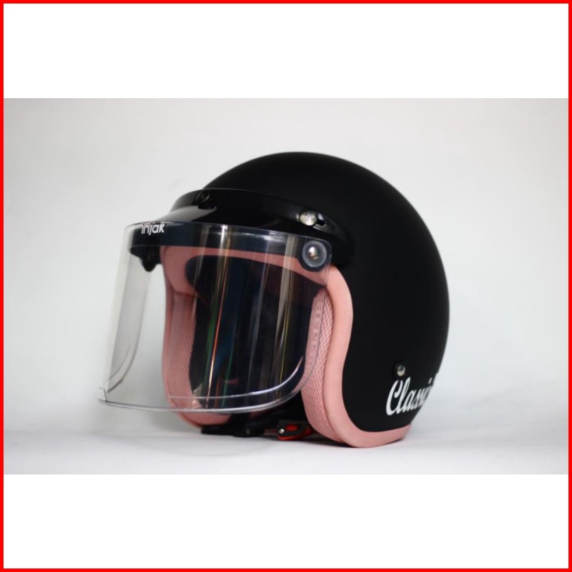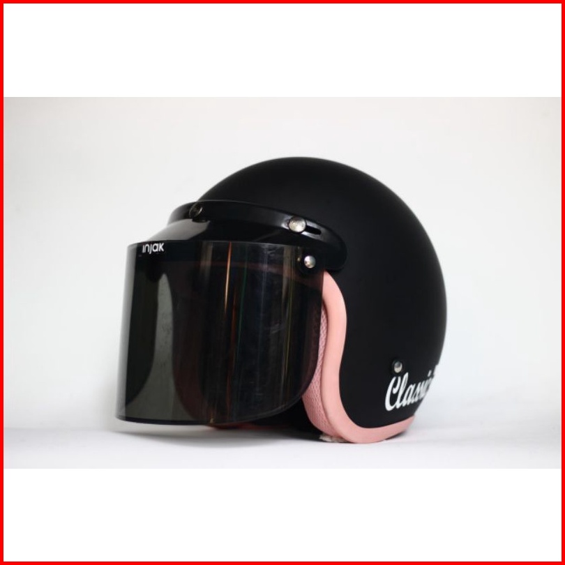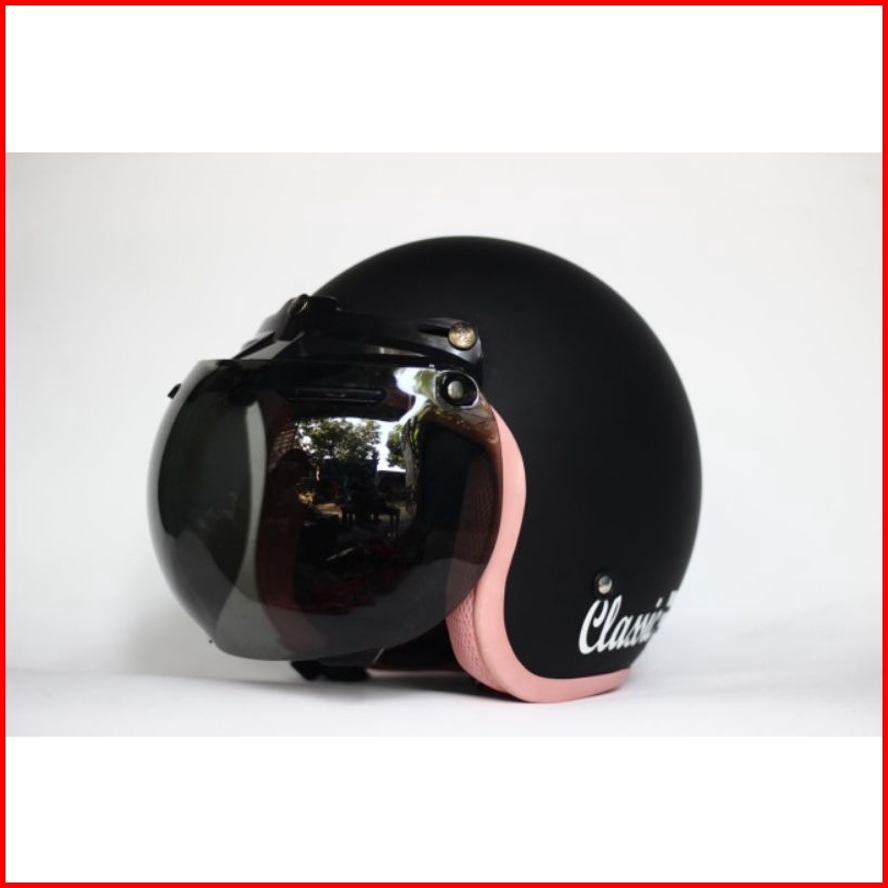 Helm Bogo Retro Classic Dewasa Hitam Dof Lis Pink