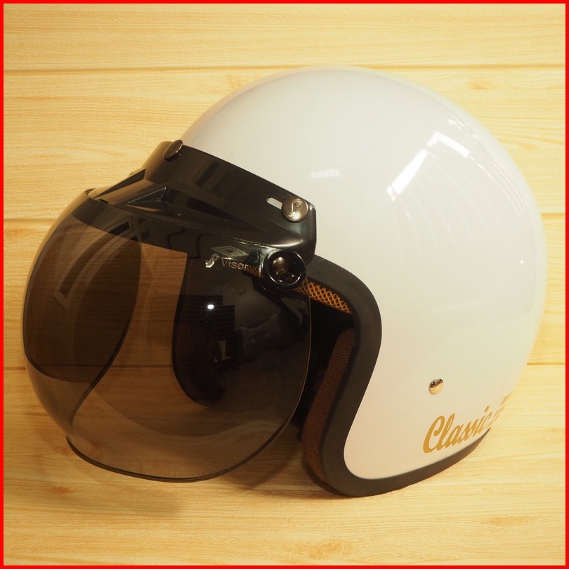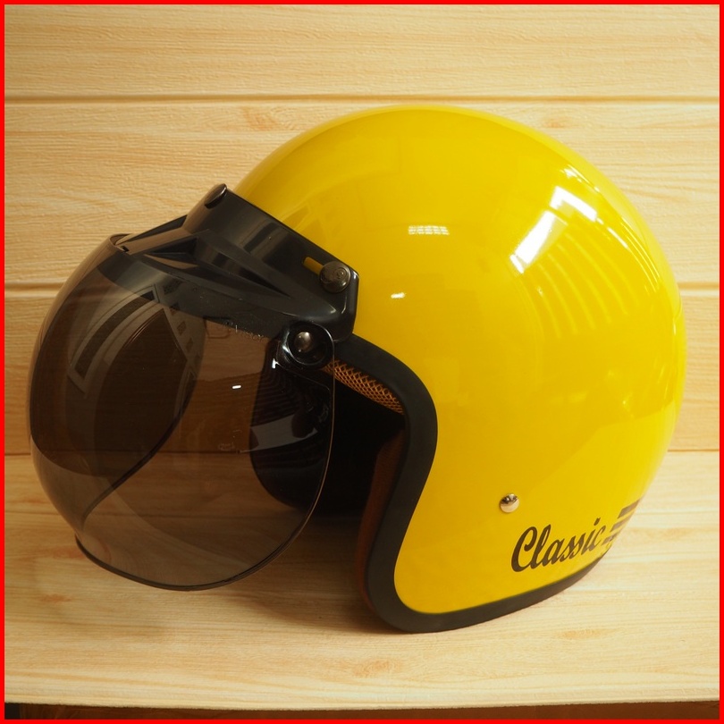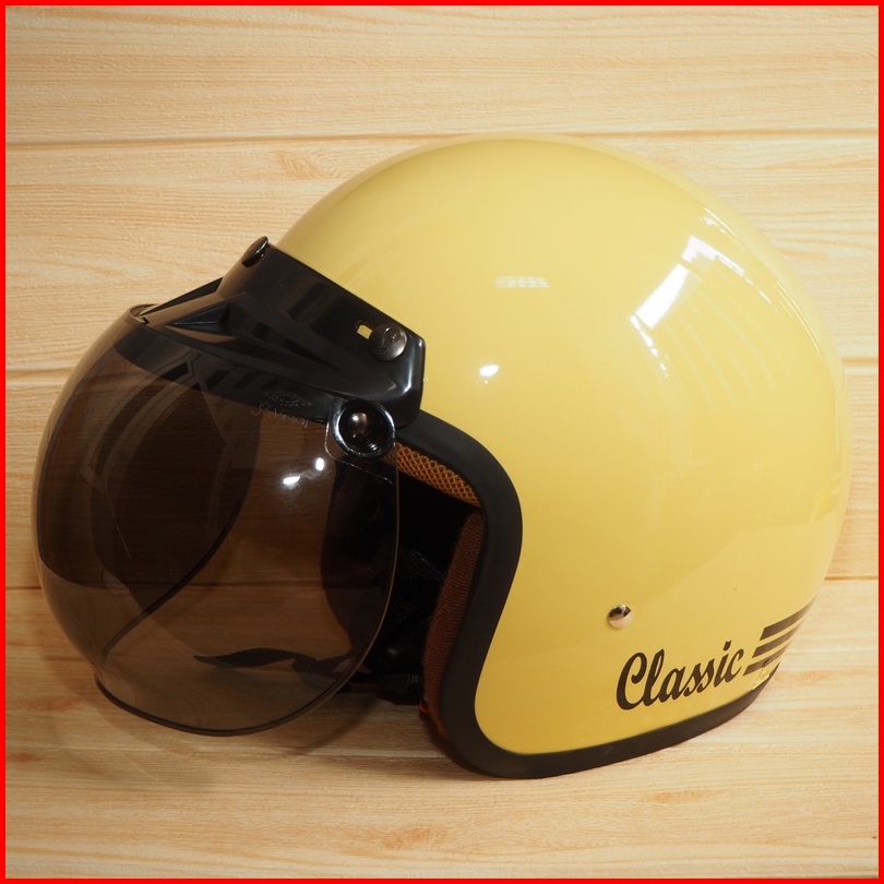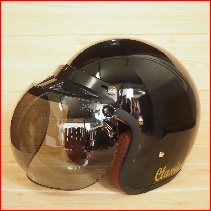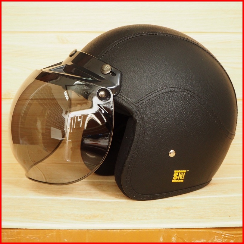 Boggo Kulit Sintetis Helm Bogo Classic Sni Dewasa Pria Dan Wanita Helmet Boggo Retro Klasik Kaca Datar Warna Full Hitam