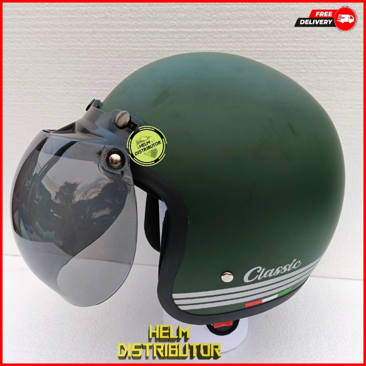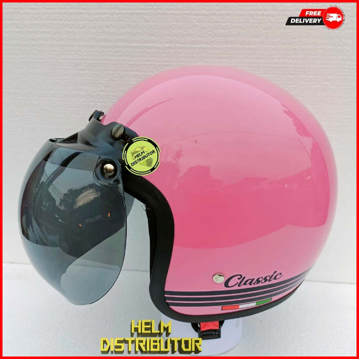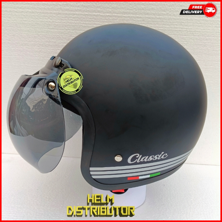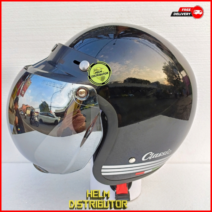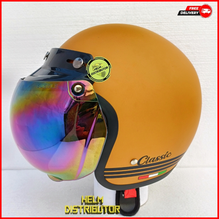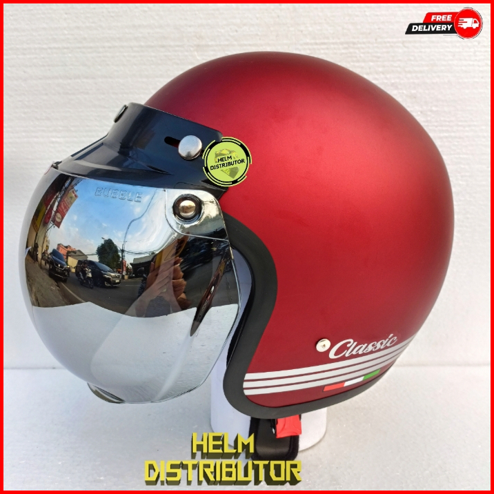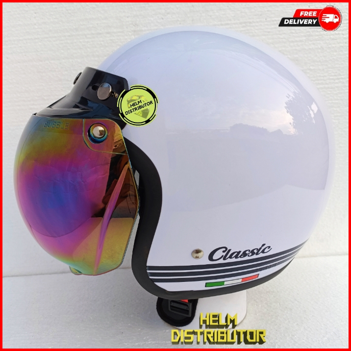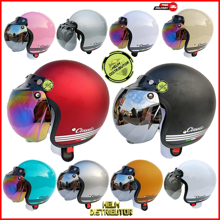 Helm Bogo Retro Classic Kaca Cembung Pelangi Kaca Cembung Silver Untuk Dewasa Pria Dan Wanita