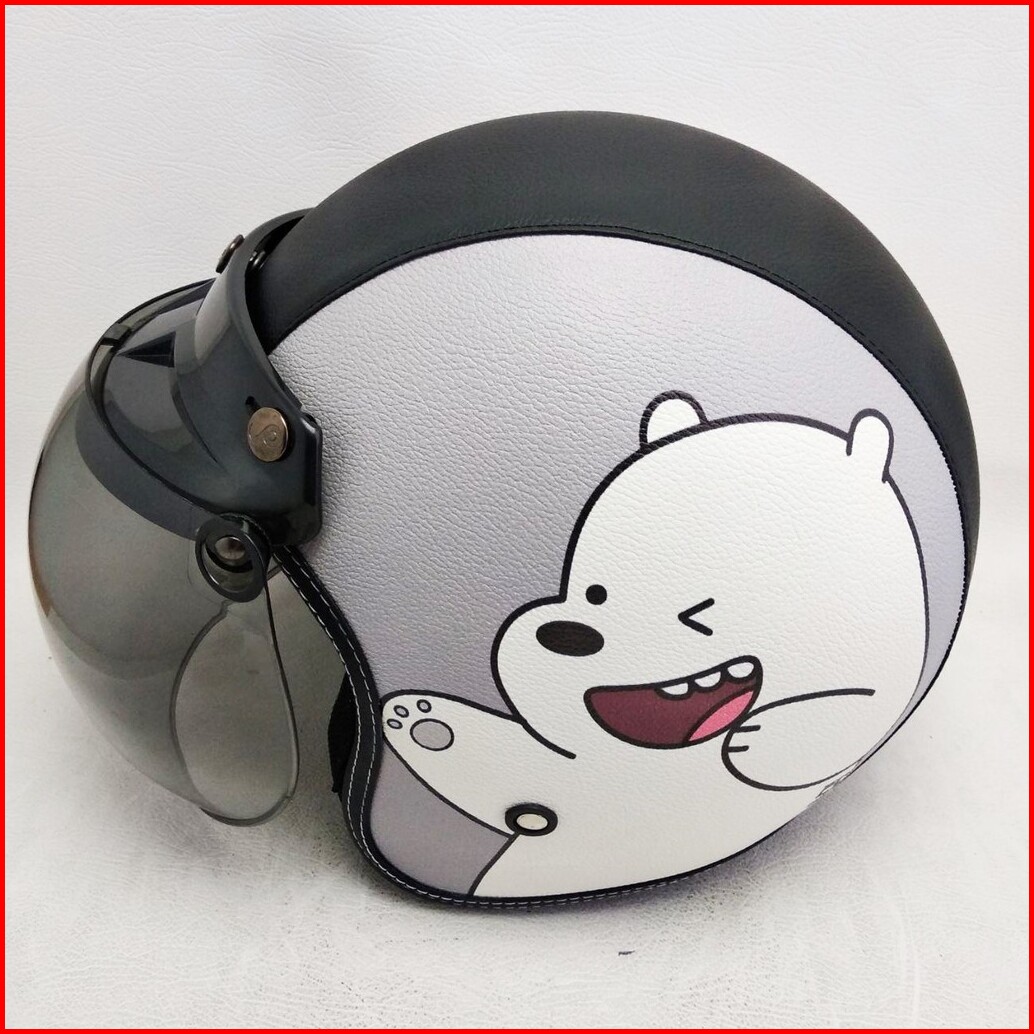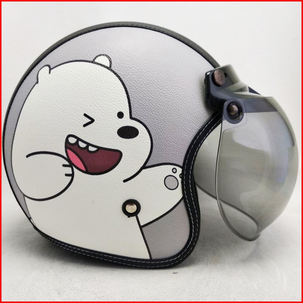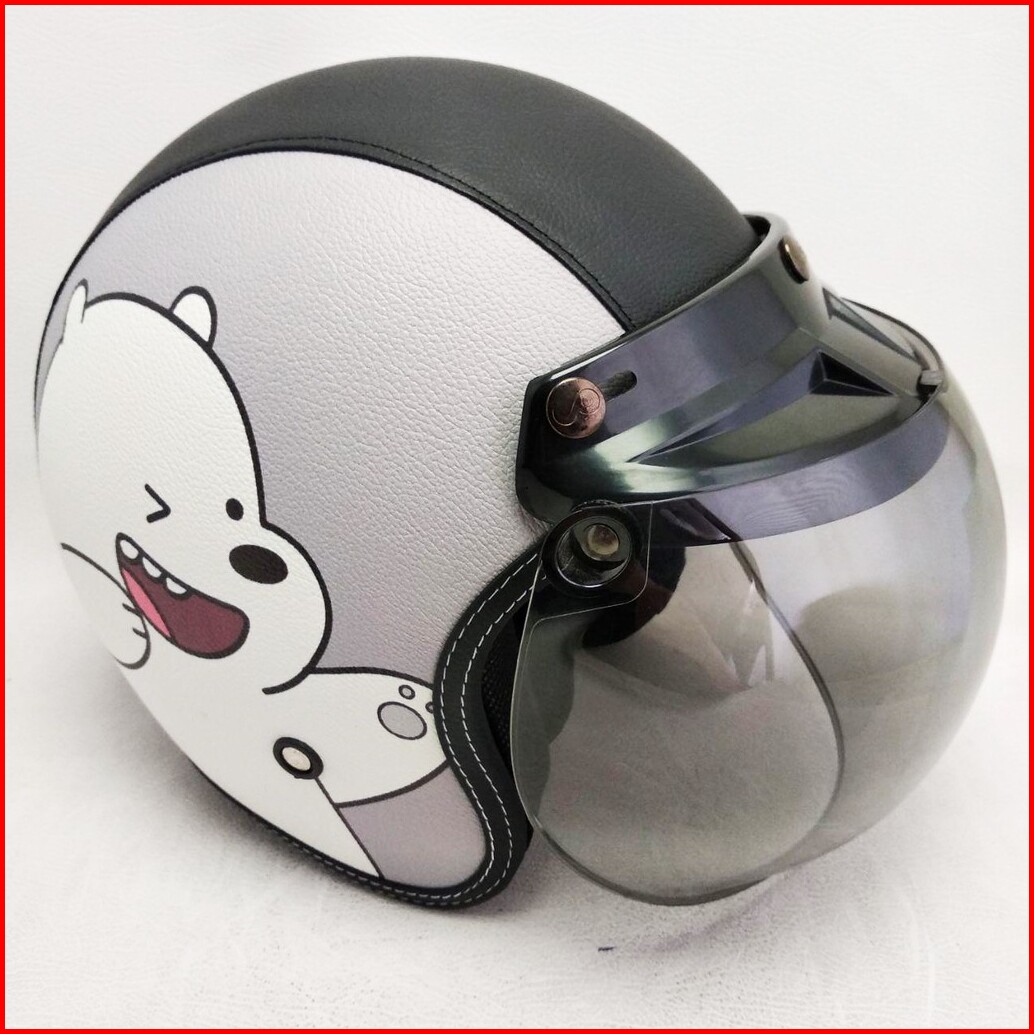 Helm Bogo Retro Kulit Ice Bear Klasik Kaca Bubble Halfface