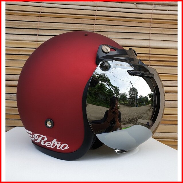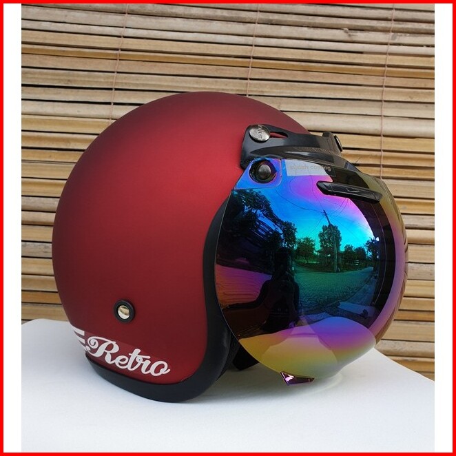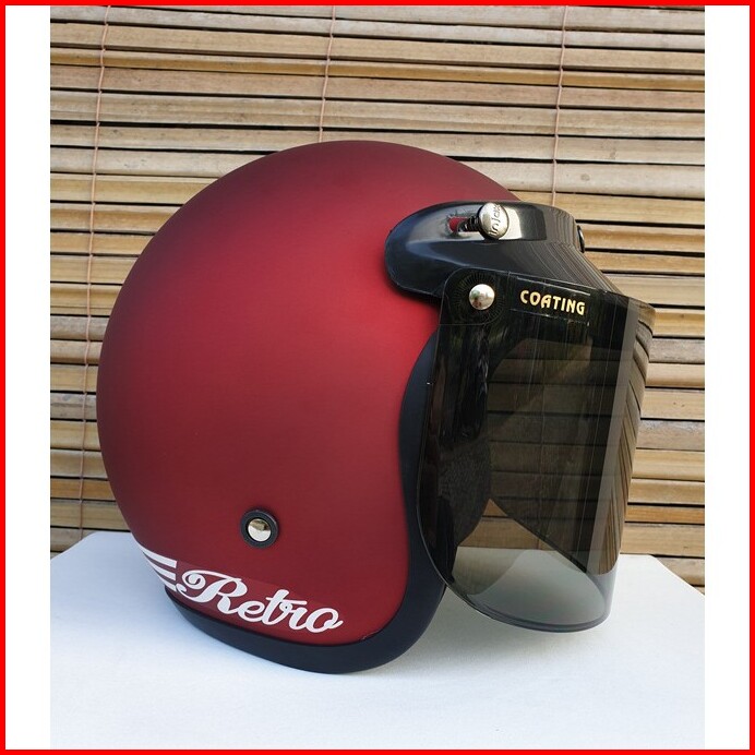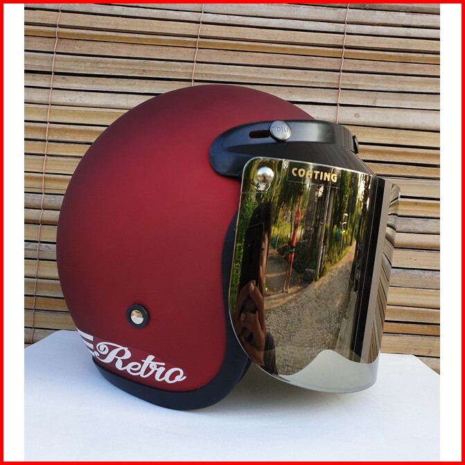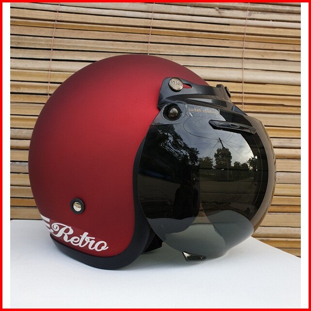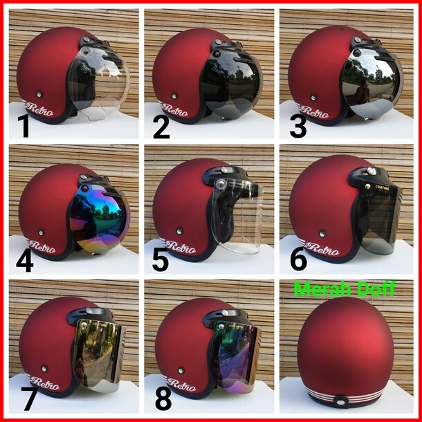 Helm Bogo Dewasa Warna Merah Dof Untuk Wanita Pria Cewek Cowok Motif Tulisan Retro