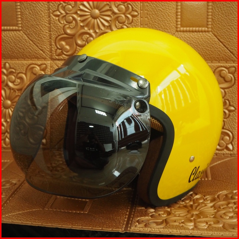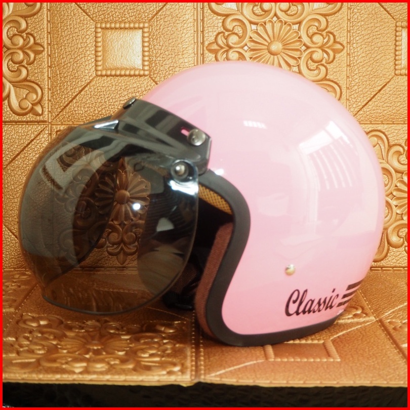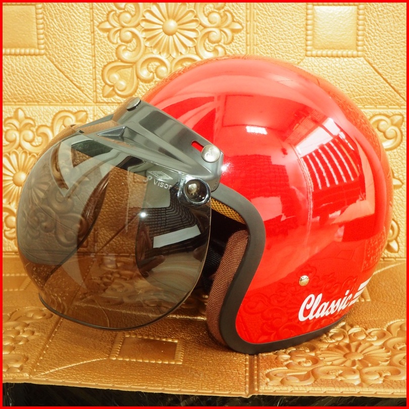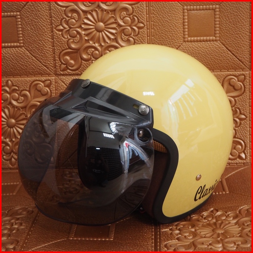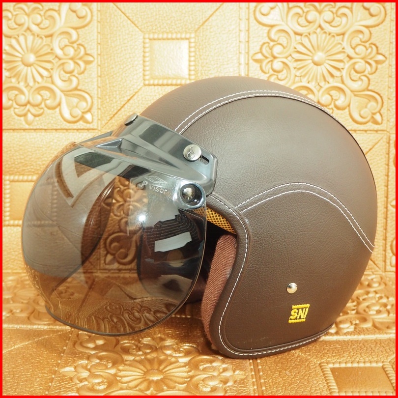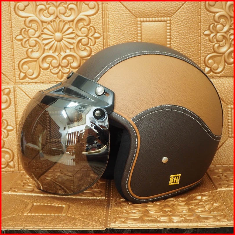 Helm Bogo Classic Glossy Sni Dewasa Pria Dan Wanita Helmet Boggo Retro Klasik Leather Sintetis Kaca Datar Cembung Warna