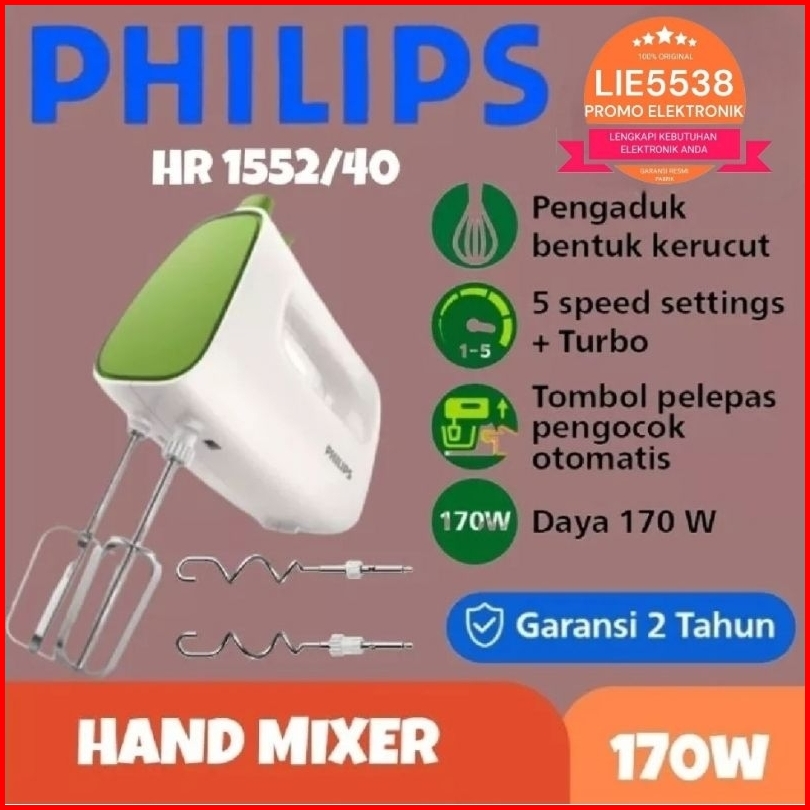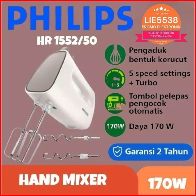 Hand Mixer Philips Hr 1552 Hr1552 Garansi Resmi