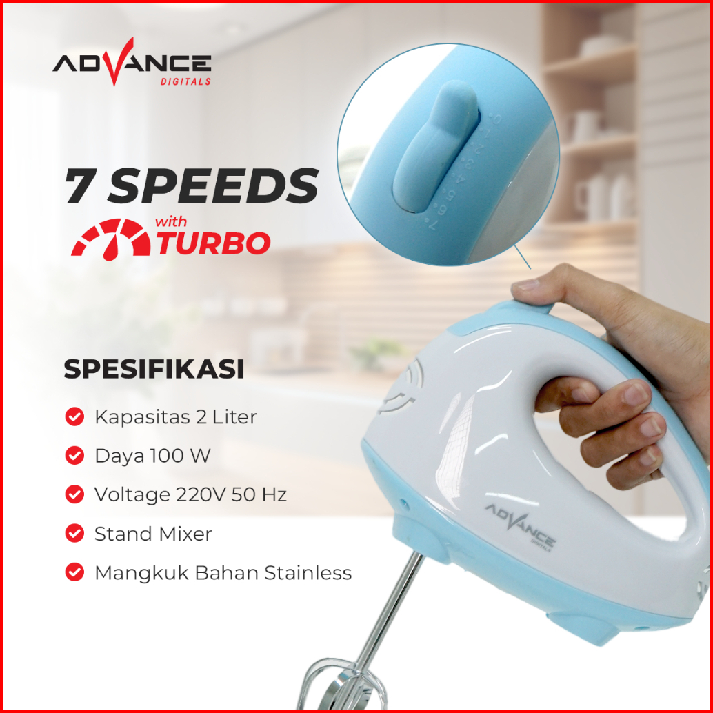 Advance Mx1003 Stand Mixer 2in1 Mempunyai 7 Speed Kecepatan Daya Hemat 100 Watt Garansi Resmi 1 Tahun