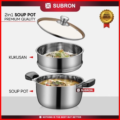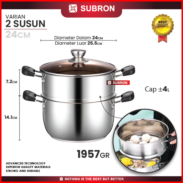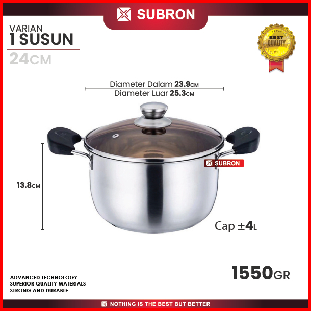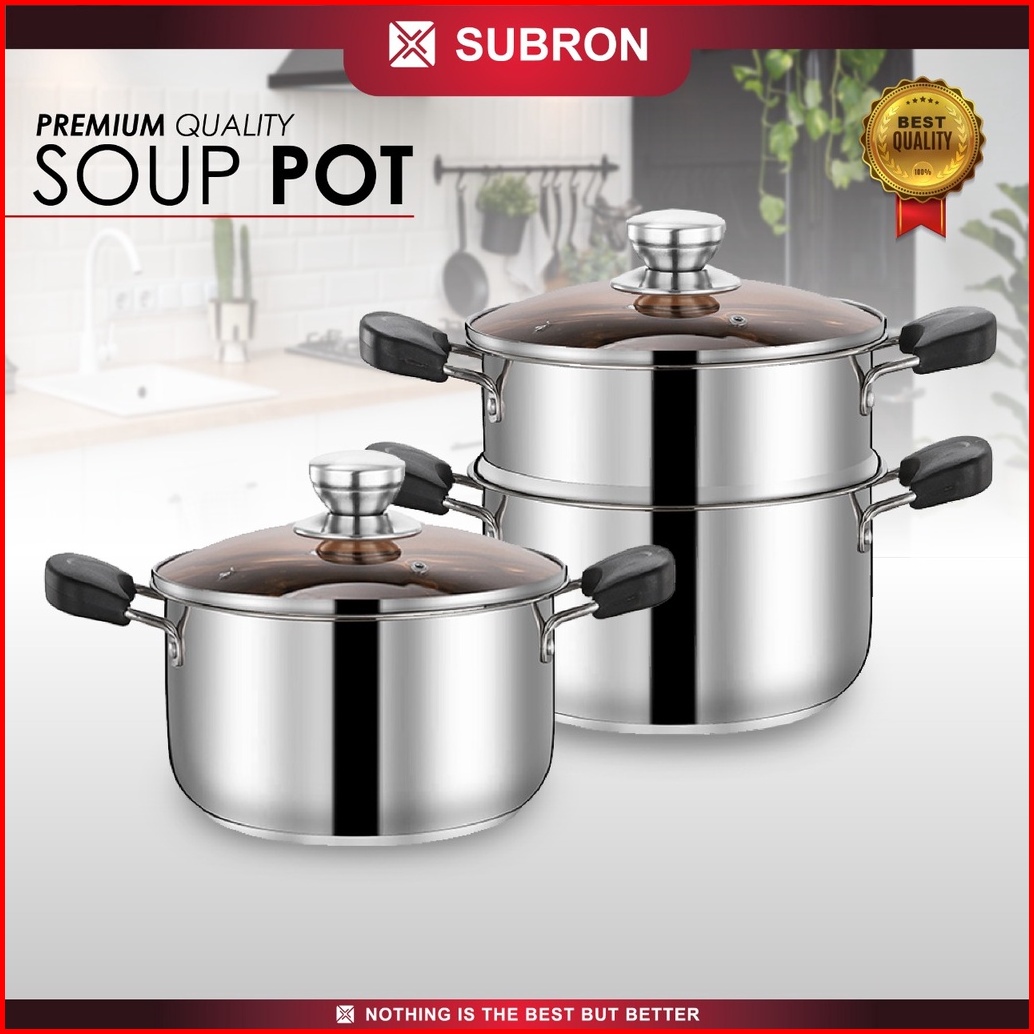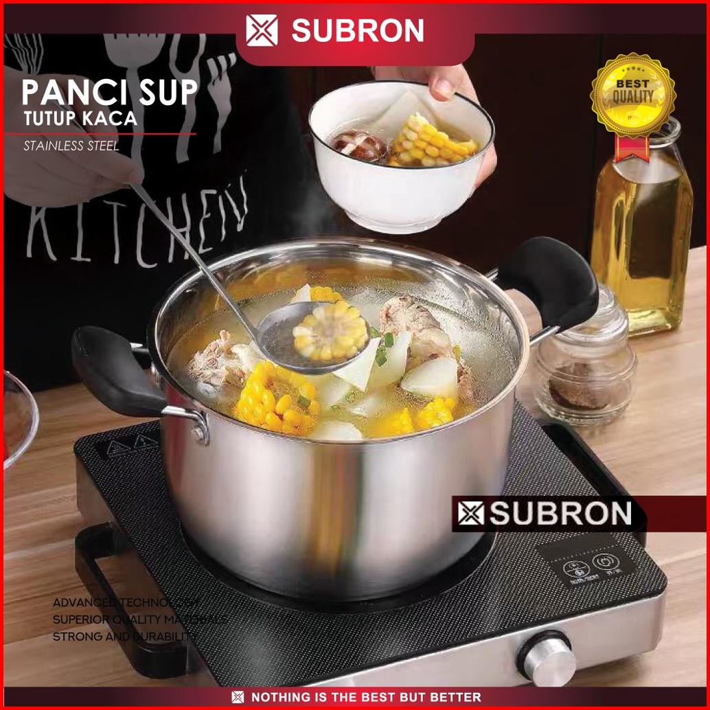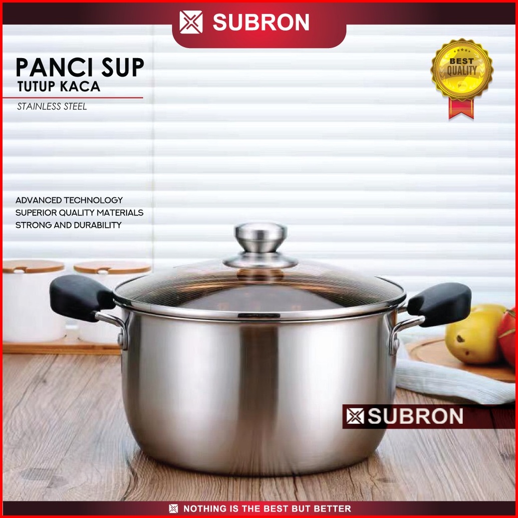Subron Panci Sup 24cm Stainless Tebal Soup Pot Tutup Kaca