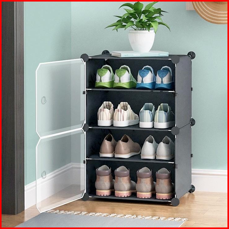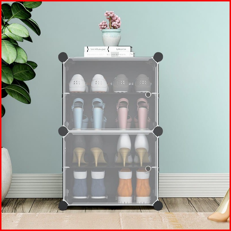 Shenar Rak Sepatu 4 Susun Tertutup Anti Debu Plastik Box Rak Multifungsi Rak Portable