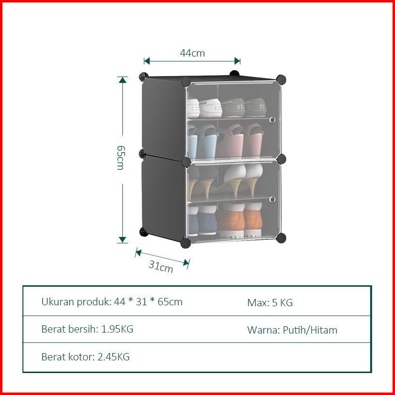 Rak Sepatu Portable 2 Kolom 4 Kotak Sendal Tebal Tertutup Anti Debu Lemari Sepatu Minimalis 4 Susun