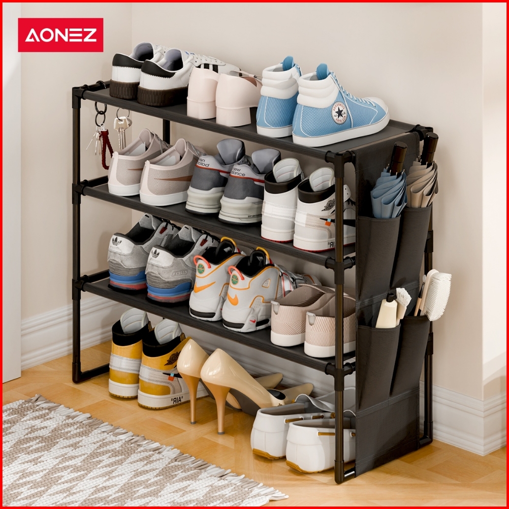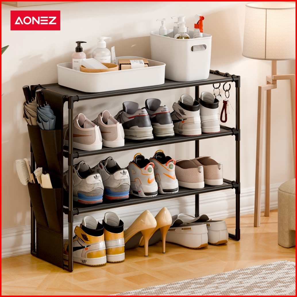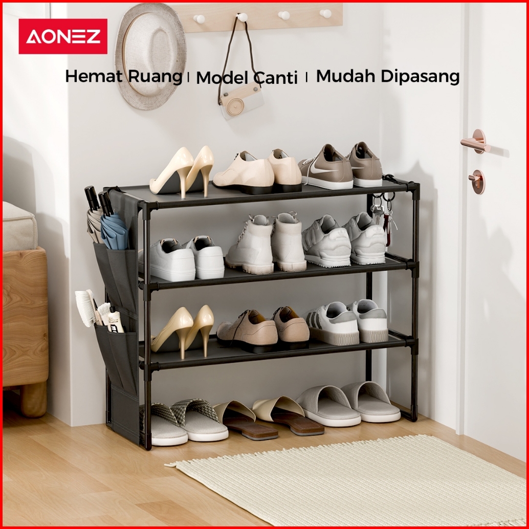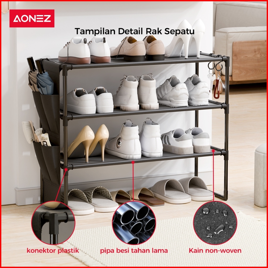 Aonez Rak Sepatu Susun Serbaguna Rak Sepatu Aesthetic Dengan Tas Penyimpanan Kait Rak Sandal Dan