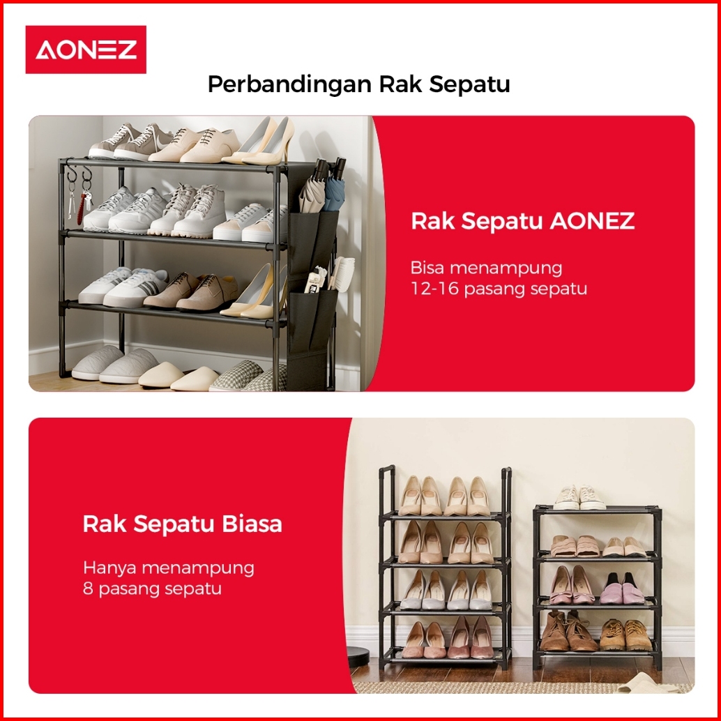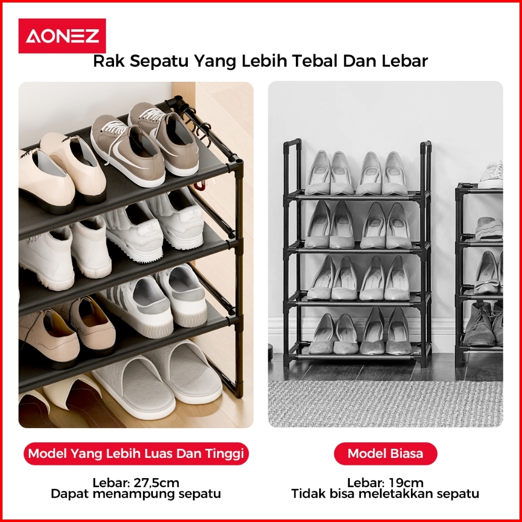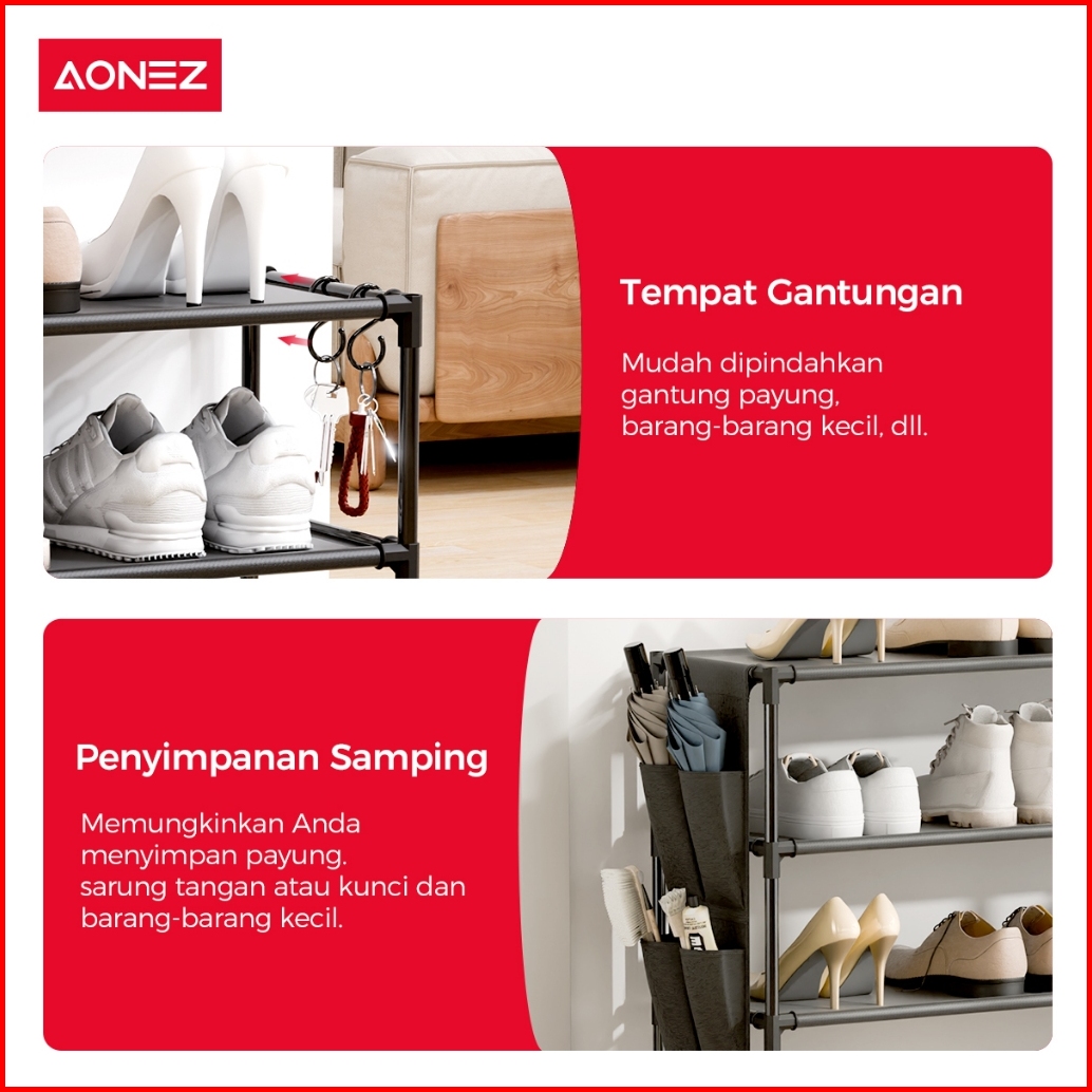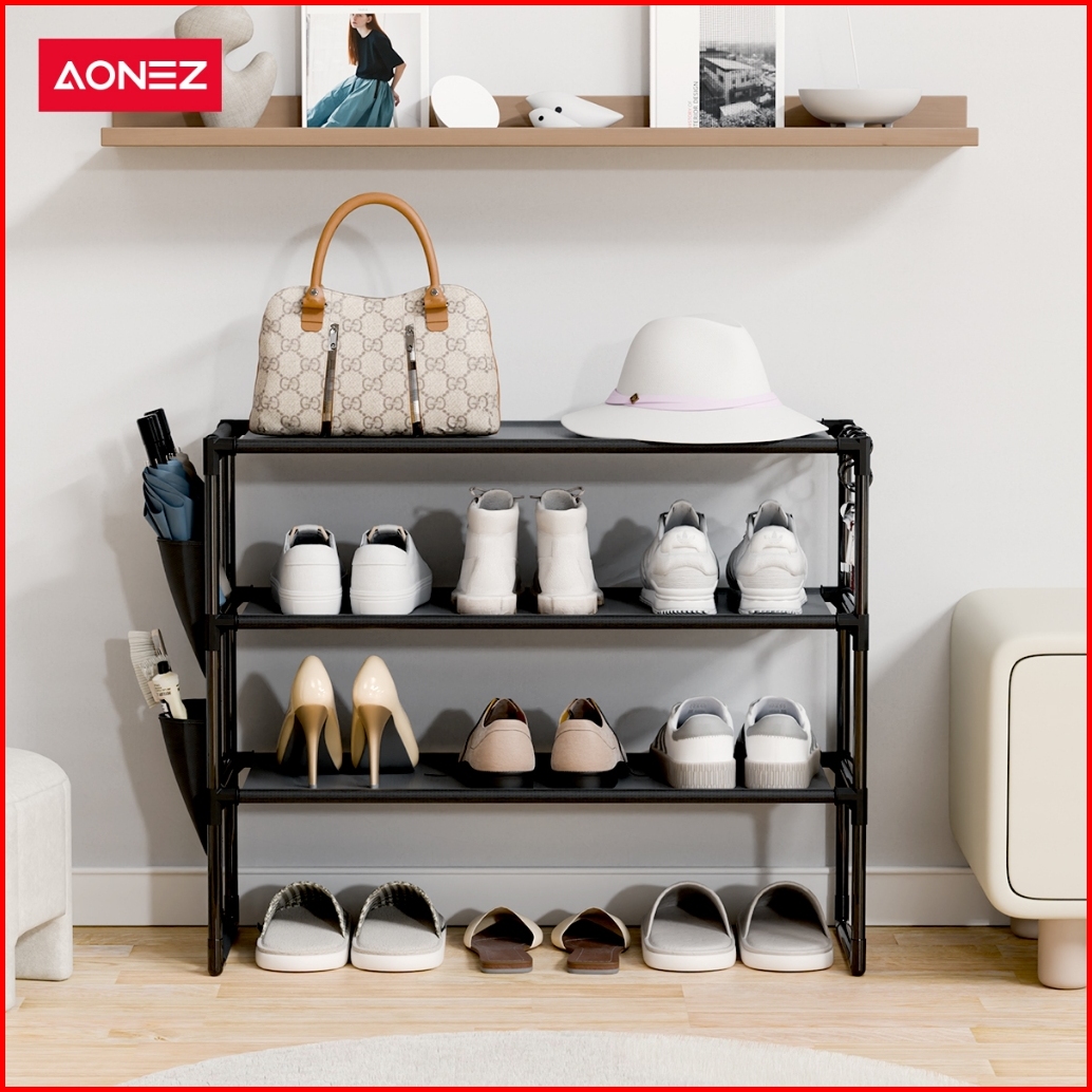 Aonez Rak Sepatu Susun Serbaguna Rak Sepatu Aesthetic Dengan Tas Penyimpanan Kait Rak Sandal Dan