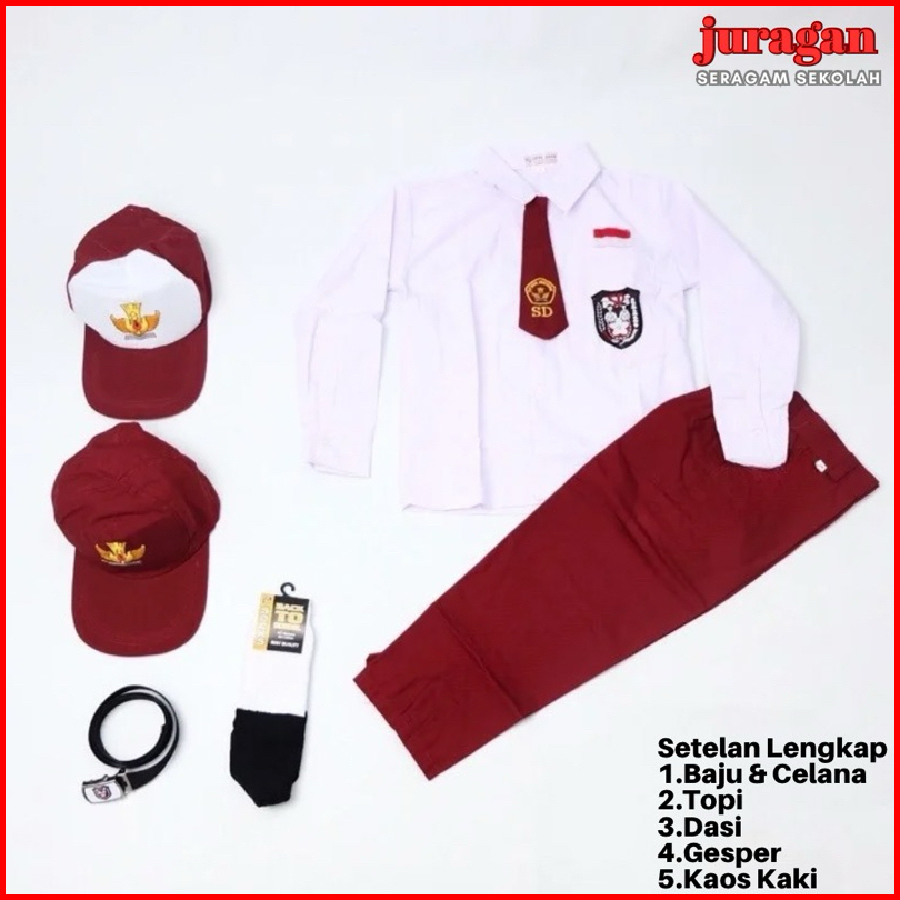Setelan Super Lengkap Seragam Sekolah Sd Laki Baju Panjang Celana Panjang