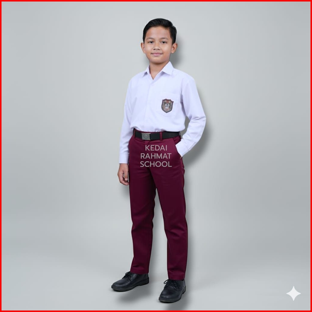 Premium Setelan Seragam Sekolah Sd Mi Putra Panjang Pendek Merah Hati Maroon Putih Kelas 1 2 3 4 5 6