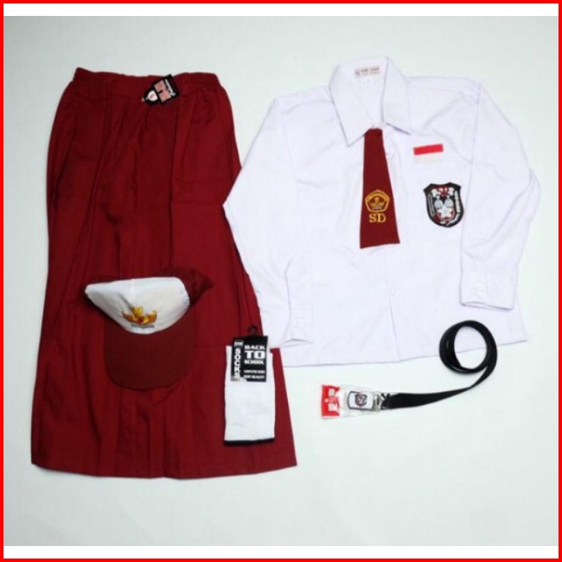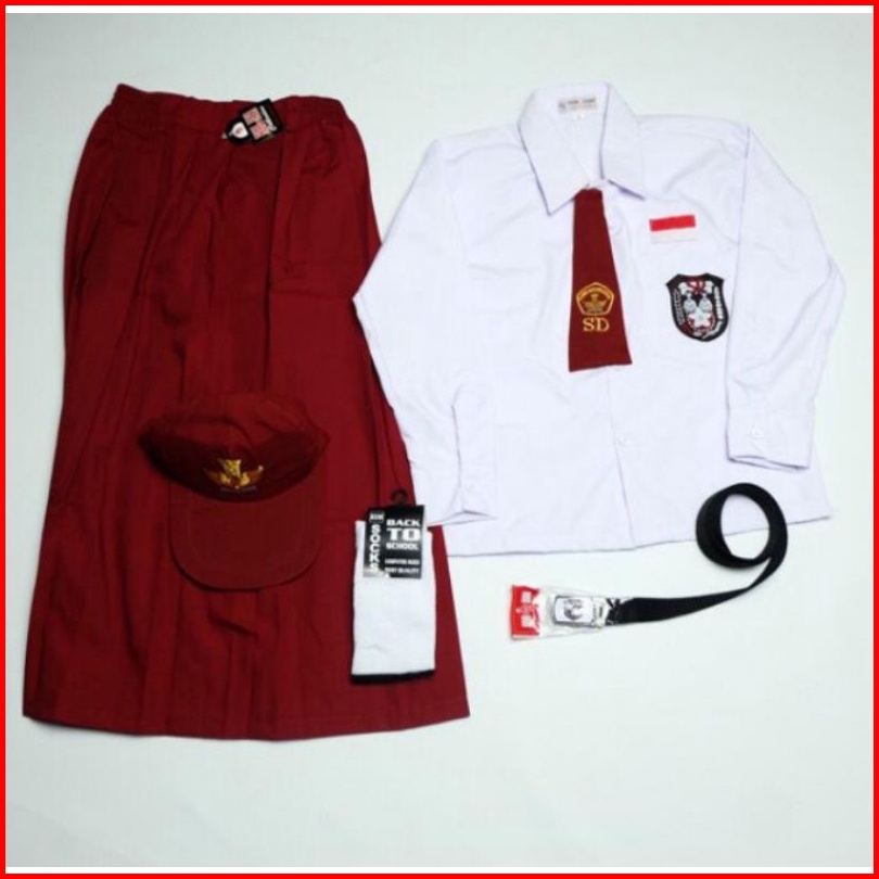 Stelan Lengkap Seragam Sd Baju Panjang Rok Panjang Cewek