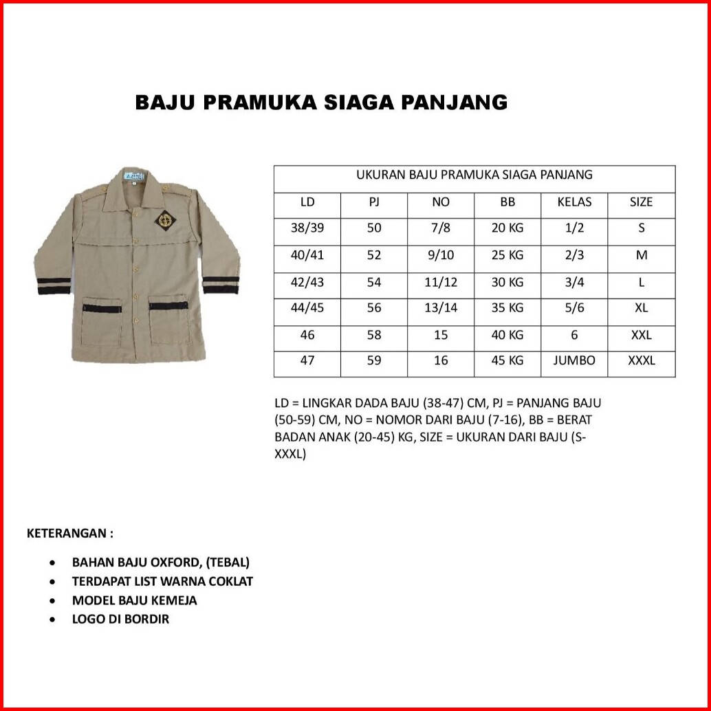 Setelan Seragam Sekolah Pramuka Siaga Perempuan Panjang Sd Kelas 1 -6