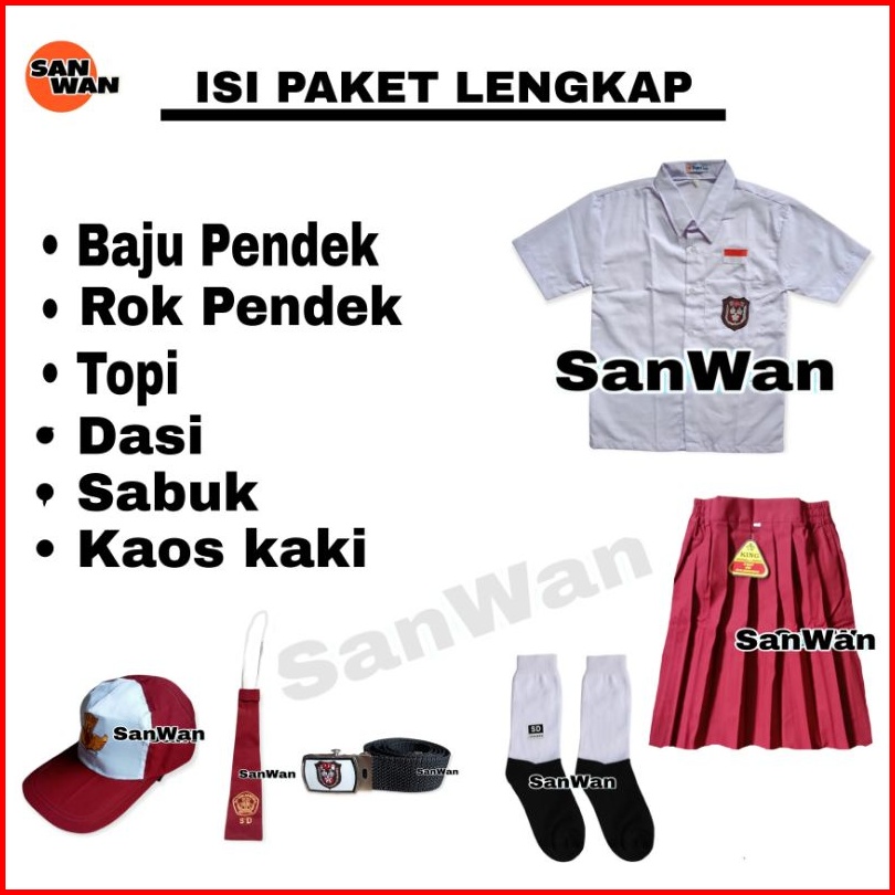 Setelan Seragam Sekolah Sd Perempuan Baju Putih Pendek Rok Merah Pendek Lengkap