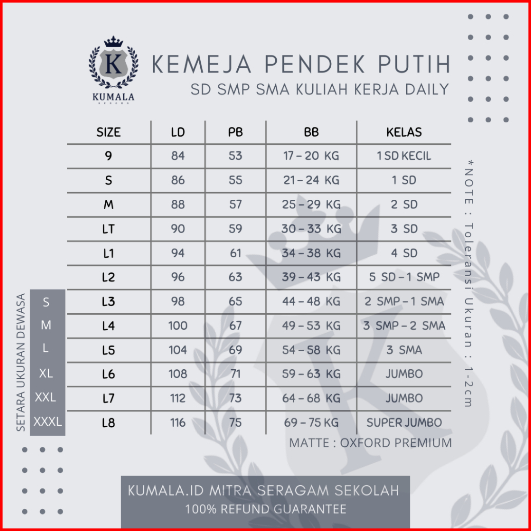 Seragam Sekolah Baju Putih Pendek Bordir Bed Sd Smp Sma Kuliah Kerja Bahan Oxford Super Kumala